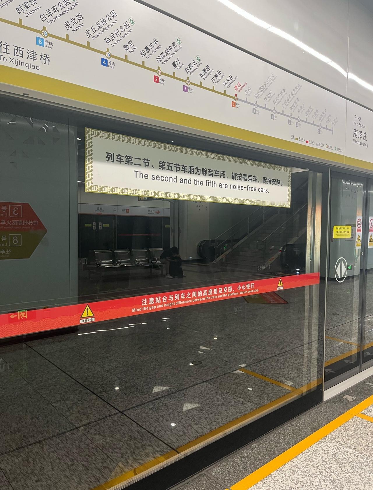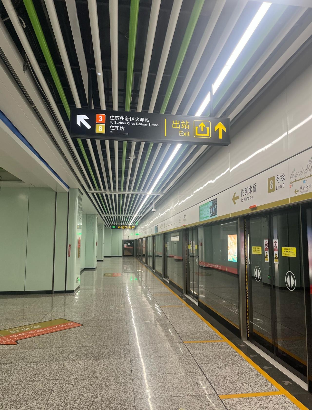 唐庄地铁站站位于苏州工业园区 是苏州轨道交通8号线与3号线在东侧的合环点 唐庄站比较特殊 采取的是叠岛换乘 乘客可以非常便捷地完成跨半环的转换 另外在唐庄站还看到了特别贴心的提示 列车第二节和第五节车厢是静音车厢 也希望静音车厢可以越来越普及