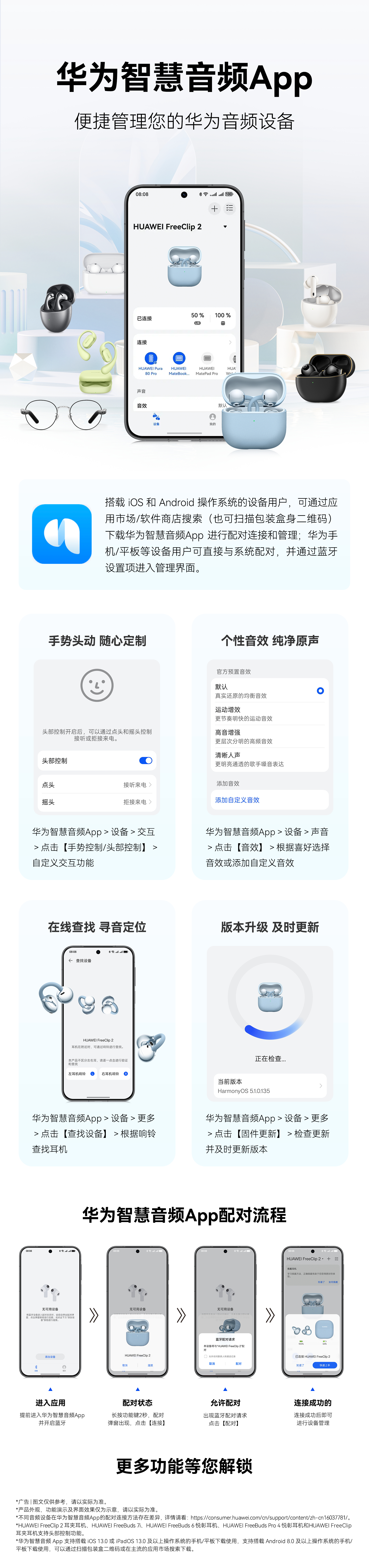 对华子的二代耳夹耳机心动好久了,一直担心自己的手机不适配,现在才知道自己的手机原来也能下载华为智慧音频App,体验基本没太大差别,太好了