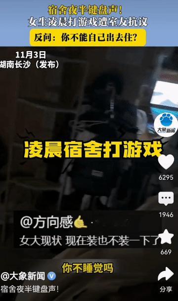 太寒心!大学女生指责室友半夜打游戏影响休息,对方却让她搬出去住。 湖南,长沙,