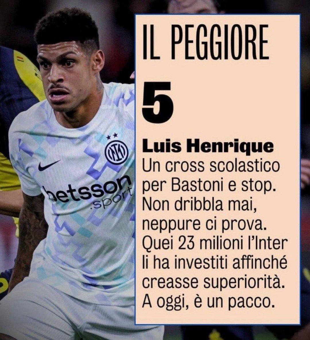 全场最差 除了给巴尔托尼的一个简单的传中之外就没有其他了 他没有盘带球 甚至都不尝试一下 国际米兰为他投入的2300W是为了取得一对一的优势 截至今日这个交易简直是一场灾难