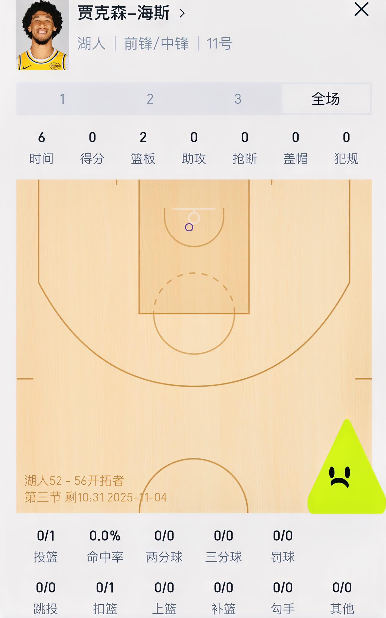海斯要退群了! 湖人与开拓者上半场打完,两边进攻效率都不高,以52比53进入中场休息! 湖人今天持球手全部缺阵,斯玛特场上控球效果并不好,那么最闹心的是谁呢?当然是我们的新饼皇海斯…他的数据定格在0分2板0助攻0罚球,真是没厨师闹海斯啊!