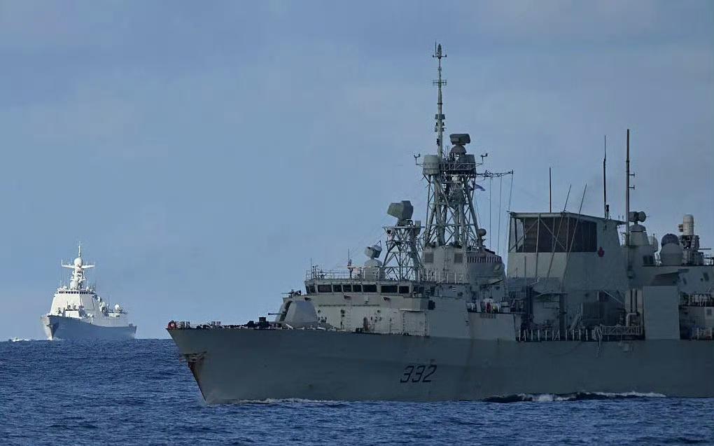 加拿大海军FFH-332“魁北克城”号护卫舰在南海活动时,被一艘中国海军驱逐舰严密跟监。 就这破船还在到处跑凸显所谓的美式“航行自由”,对比颜值、战力,天差地别。 南海态势