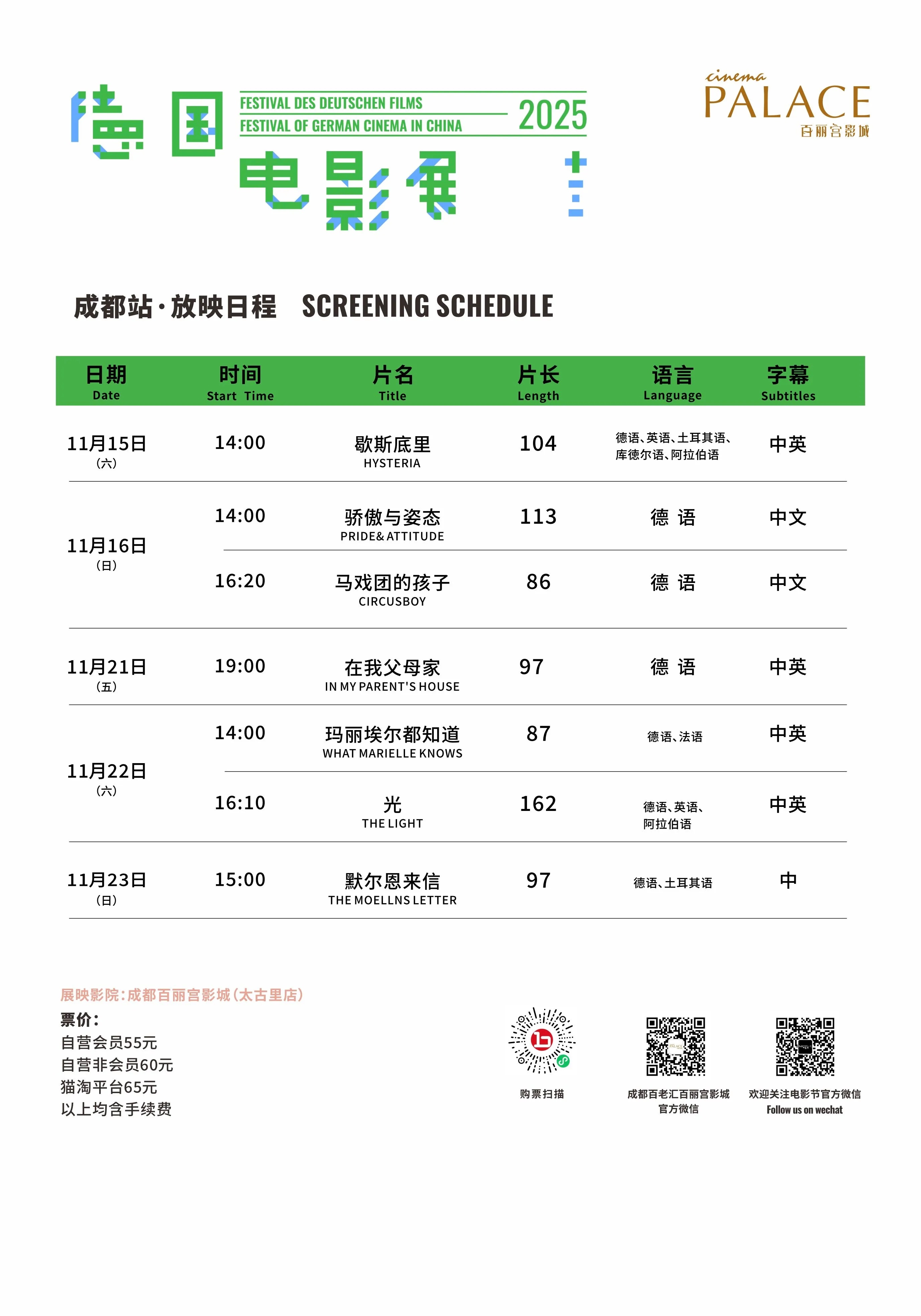 影展 2025年德国电影展·成都站排片表公布,今天(11月4日)14:00正式开