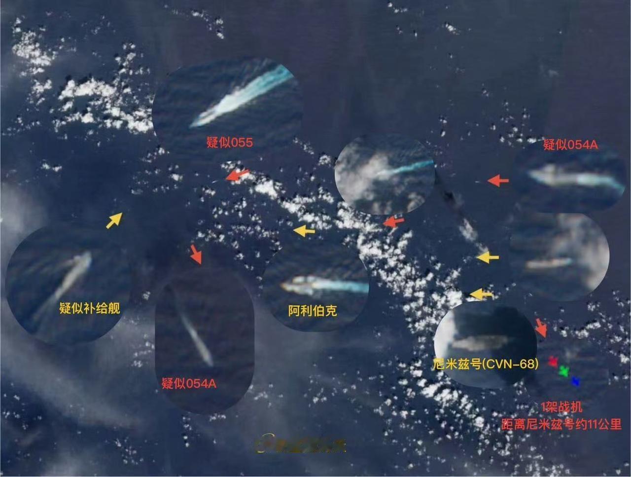 美军两架飞机坠毁接近真相了!卫星拍摄下南海慌乱一幕,巨型战舰斜地里突然插入美航母舰队! 话说,前个把星期,尼米兹号(CVN-68)航母在南海半小时内,连摔两架舰载机之后,并未迅速离开,而是移动至黄岩岛东南方海域。 这艘尼米兹号是从中东回来的,被胡塞打得焦头烂额,路过南海准备返回美国本土。 11月2号,在黄岩岛东南约200公里,卫星发现慌乱一幕,一支巨型驱逐舰编队,穿插在美军尼米兹号(CVN-68)航母打击群之间! 图上双方各几艘大船,方向也不同! 其实,航母打击群进入南海,均会受到不同程度的“热烈欢迎”,“围观”,甚至“交流”,可以这么说,美军的航母打击群,面对055是一堂必修课。 你说为何,在天气良好的情况下,30分钟内相继坠毁两架舰载机? 调查来调查去,美军仍然不敢说出及坠毁的具体原因。 不用再调查了,大家已经心里有数。