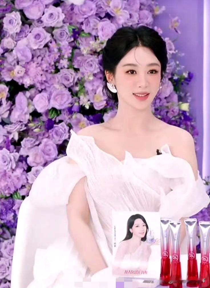 杨紫这组直播造型,是把“温柔贵气”焊在身上了 杨紫的新直播造型,堪称“人生妆造”级别的惊艳:白色褶皱礼裙裹着肩颈,蓬松裙摆像揉碎的月光,配上低盘发与珍珠耳饰,甜意里裹着精致贵气。 紫调花墙的背景里,她抬眼时的柔与造型的仙撞得刚好,连随手的动作都透着松弛的美。这哪里是直播造型,分明是把“优雅甜妹”的气质具象化了,越看越心动。