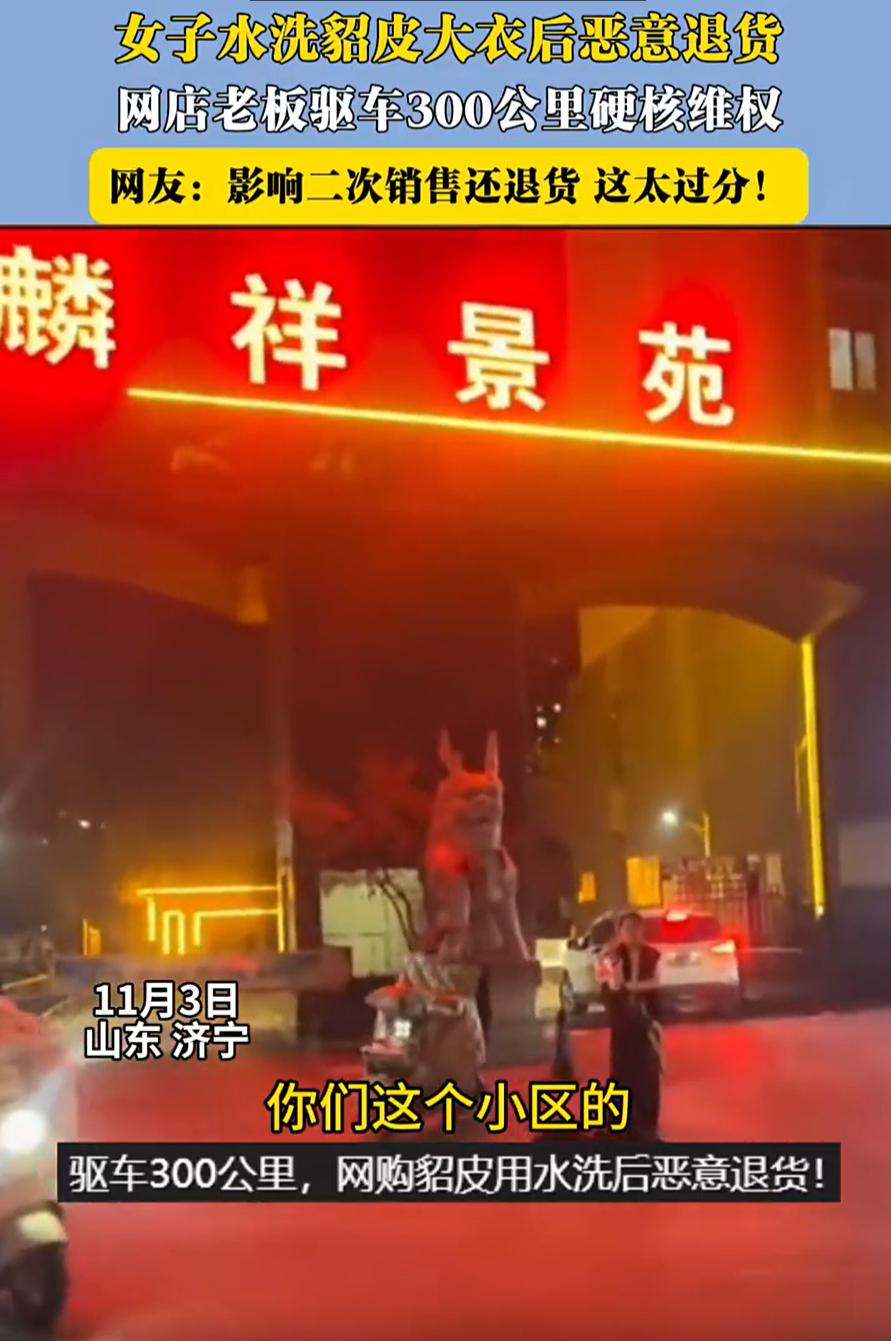 “这下惹到不该惹的人了!”山东济宁,一位网店老板卖了一件2000多元的貂皮大衣,可对方收货几天后又把衣服恶意退货,看到衣服已经没法再卖,女老板也是咽不下这口气,直接开车300公里,来到客户楼下用喇叭找人喊话! 视频中,网店老板拿着喇叭,站在小区门口宣传:你们这个小区,有一个20多岁的小姑娘,买了一件貂皮大衣,然后呢,给我退回来用水洗了,现在还死不承认,谁家的孩子这么不要脸 店主王女士称,对方是花了2000元购买她店里最便宜的貂皮大衣,貂皮不能用水洗,结果买回去后水洗了。对方退回去后衣服已经没法二次销售,给她打微信、电话都不接,所以这才如此生气,现在准备走法律程序,必须追究到底 有网友说:这种人确实气人,我网购多年,退货不超过十次,都是服装,实在不合身或者与展示图片不符的,试完就退了,这明知道是貂皮大衣还给洗了,真不知道是安的什么心 说句实在话,电商平台的七天无理由退货,本意是保护消费者,但现在被部分人当成了“白嫖”的手段。有人买衣服穿几天拍照就退,有人换完零件再退货。平台规则本身没错,错的是那些钻空子的人。久而久之,卖家不敢卖真货、不敢接低价单,市场的信任感就被一点点磨没了 而且买家把貂皮大衣洗了以后再退货,已经违反了《消费者权益保护法》和《电子商务法》里关于“七天无理由退货”的规定,也就是违约了 七天无理由退货的前提是,商品必须完好,不影响二次销售。像貂皮这种特殊材质,说明里一般都会标明“不可水洗”,一旦洗过就算人为损坏。只要卖家能提供证据,比如发货照片、售前说明、退回后的实物检测结果,就能证明商品不是质量问题,而是买家造成的损坏 我想说的是,买卖这事,本质上是信任的交换。买家信任卖家的品质,卖家信任买家的诚信,真遇到较真的人,最后麻烦的还是自己 女子恶意退货 老板驱车300公里维权