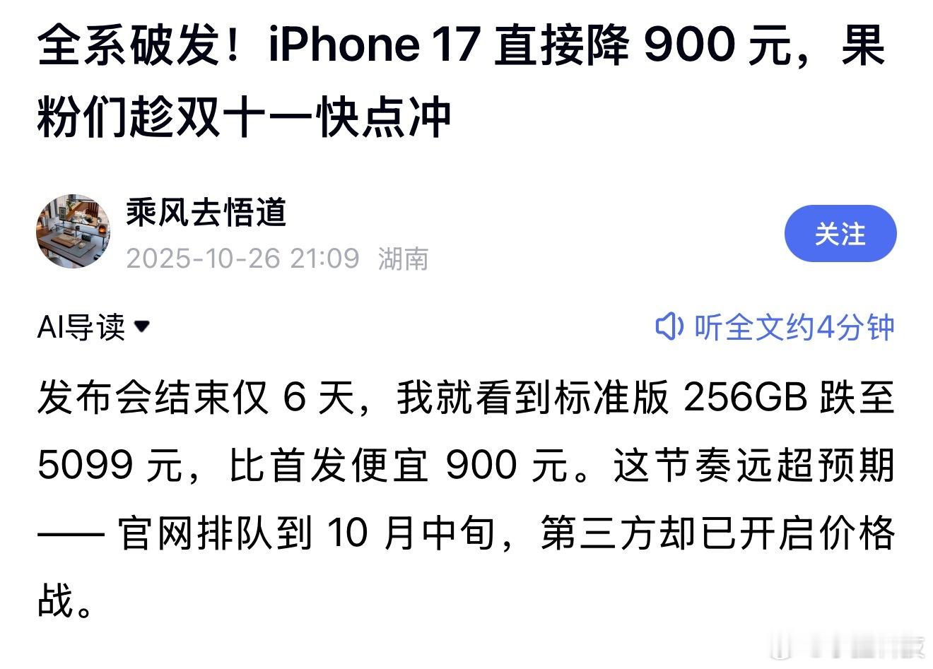 可如今,在众多国产品牌的崛起和挤压下,iPhone发布即破发,现在只能通过降价来吸引消费者,国产手机因为其高性价比、产品线多样化、频繁迭代更新而赢得国内市场的青睐,以往iPhone在iOS、交互、生态、流畅度方面的优势也渐渐被拉平,甚至反超,我相信拥趸们再也找不到当初为iPhone溢价购买的心动感了吧?