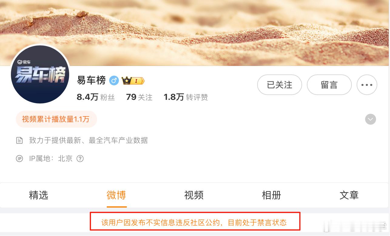 易车榜微博被封了,那易车的 APP 产品需不需要整改下架?我看周榜还在呢。