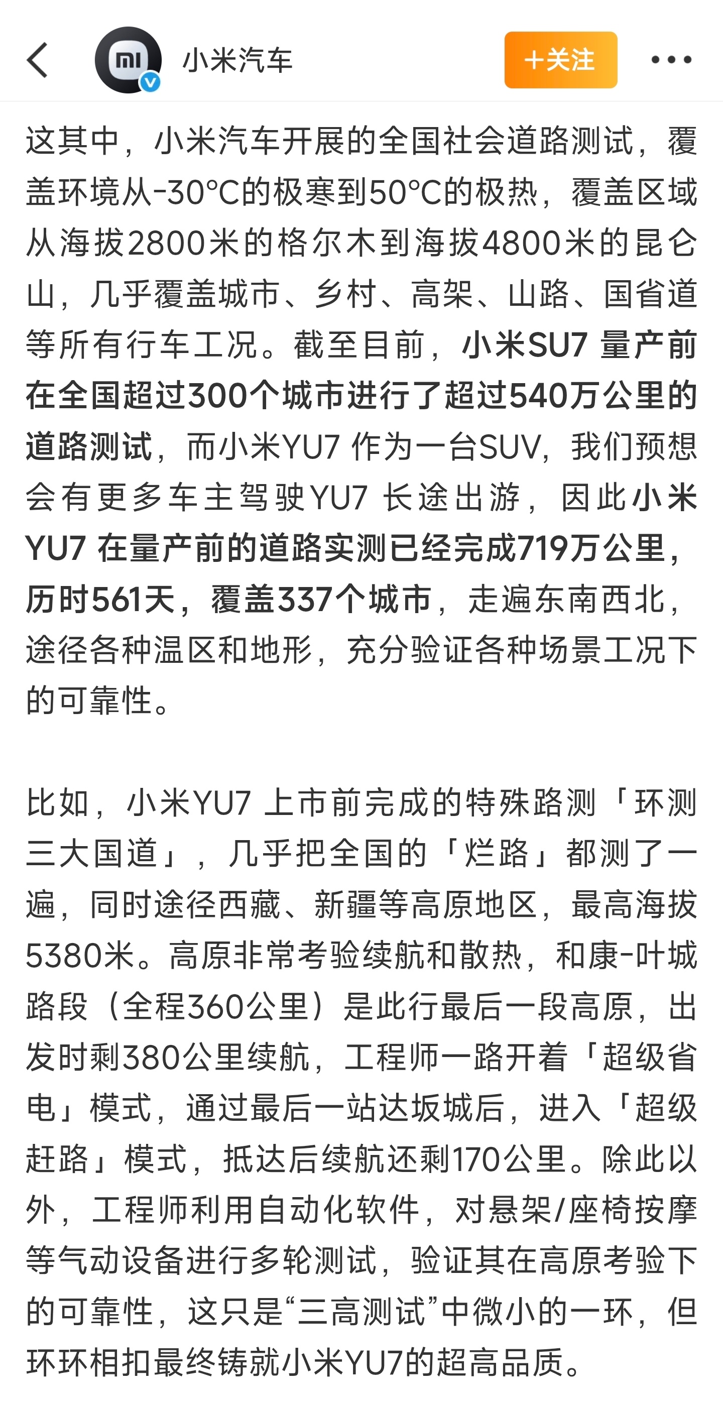 国内的汽车充电网络建设得太快太好了,这是大家开电车跑高原跑荒漠的底气,对电车的性能和质量也提出了更高要求。小米一直在投入到真实路测当中,就是要发现更多潜在不足,才能持续提升用户体验[并不简单] ​​​