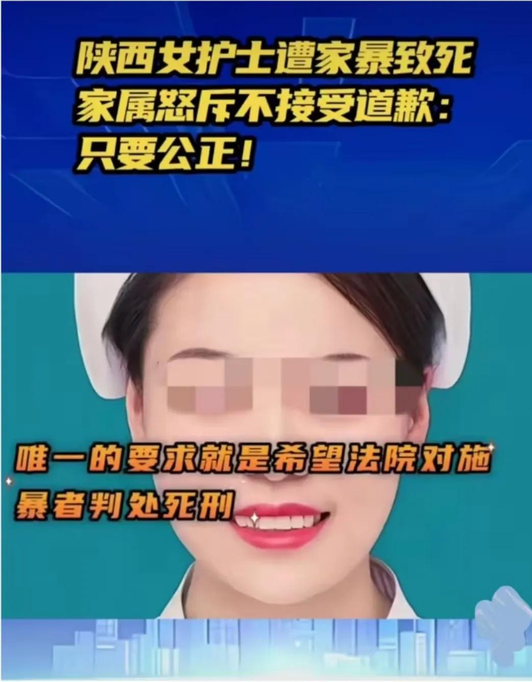 西安护士被害案开庭!父亲拒赔只求死刑,女儿5年不知男友已婚的 看完西安女护士被害案今天的开庭新闻, 我敢说,所有关注这事儿的人都揪着心等结果 他们揪心的原因不是猎奇,而是太心疼那个本该好好活着的姑娘 首先,姑娘31岁,大学毕业当护士,自己首付买房,生活节俭上进,就因为提分手被同居男友捅死,更气的是对方捅完人开一小时车才报警,生生耽误了抢救。 其次,家里人等了一年多,父母成宿睡不着,母亲住院刚出院,现在就一个念头,不要赔偿不要道歉,就要凶手死刑。 这样的恶性案子,不判死刑怎么告慰她年轻的生命?遇害女生 女子遇害案
