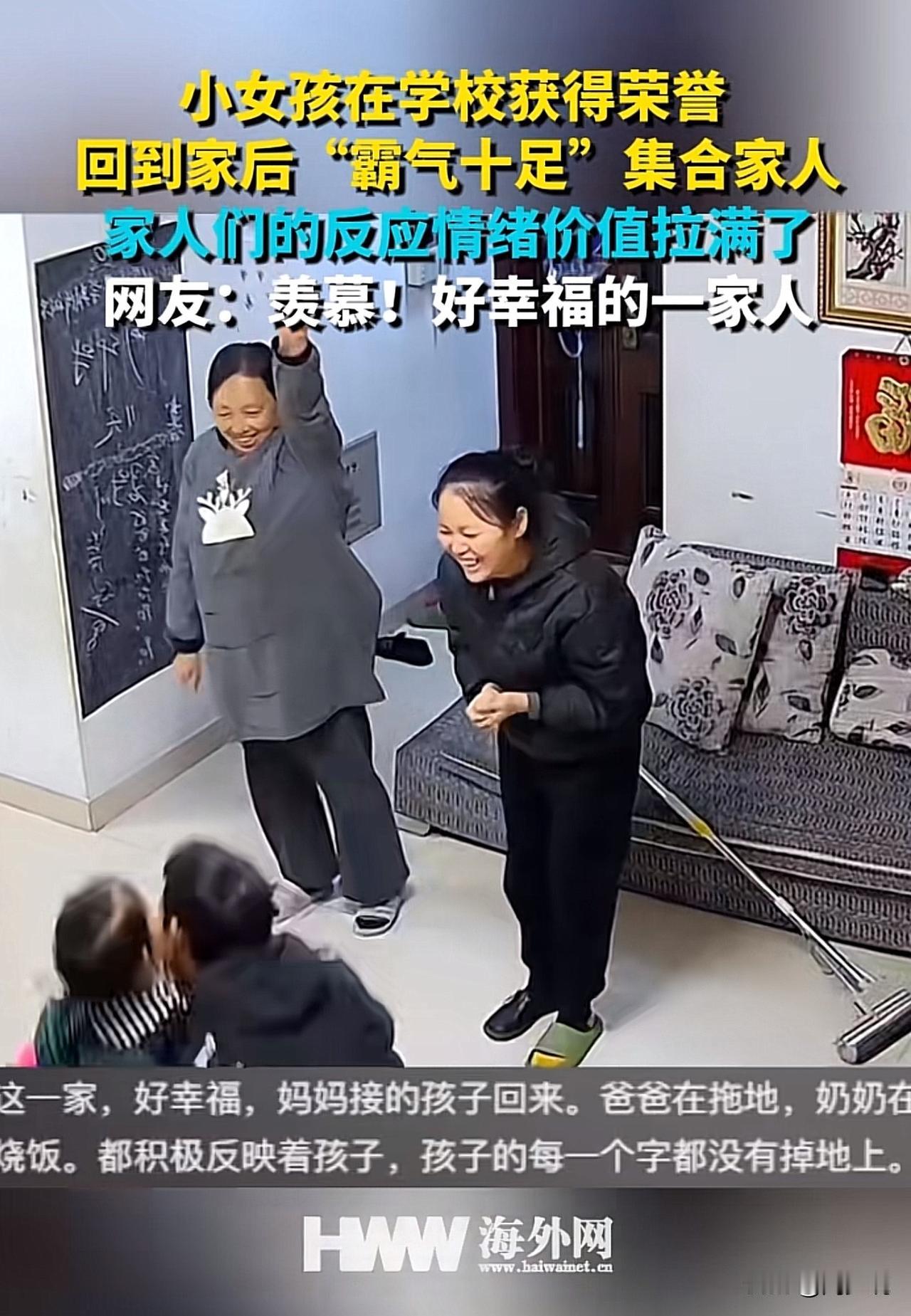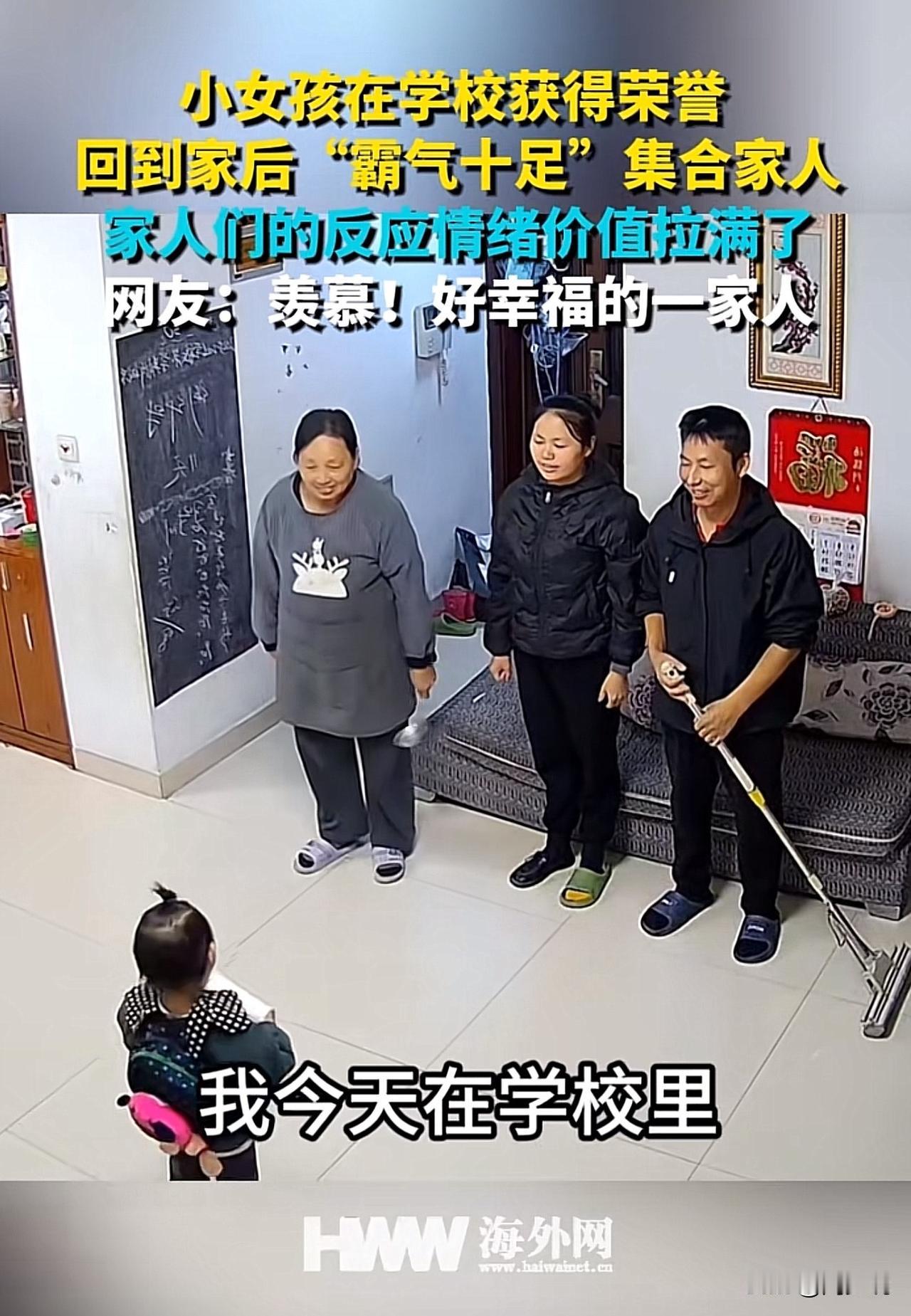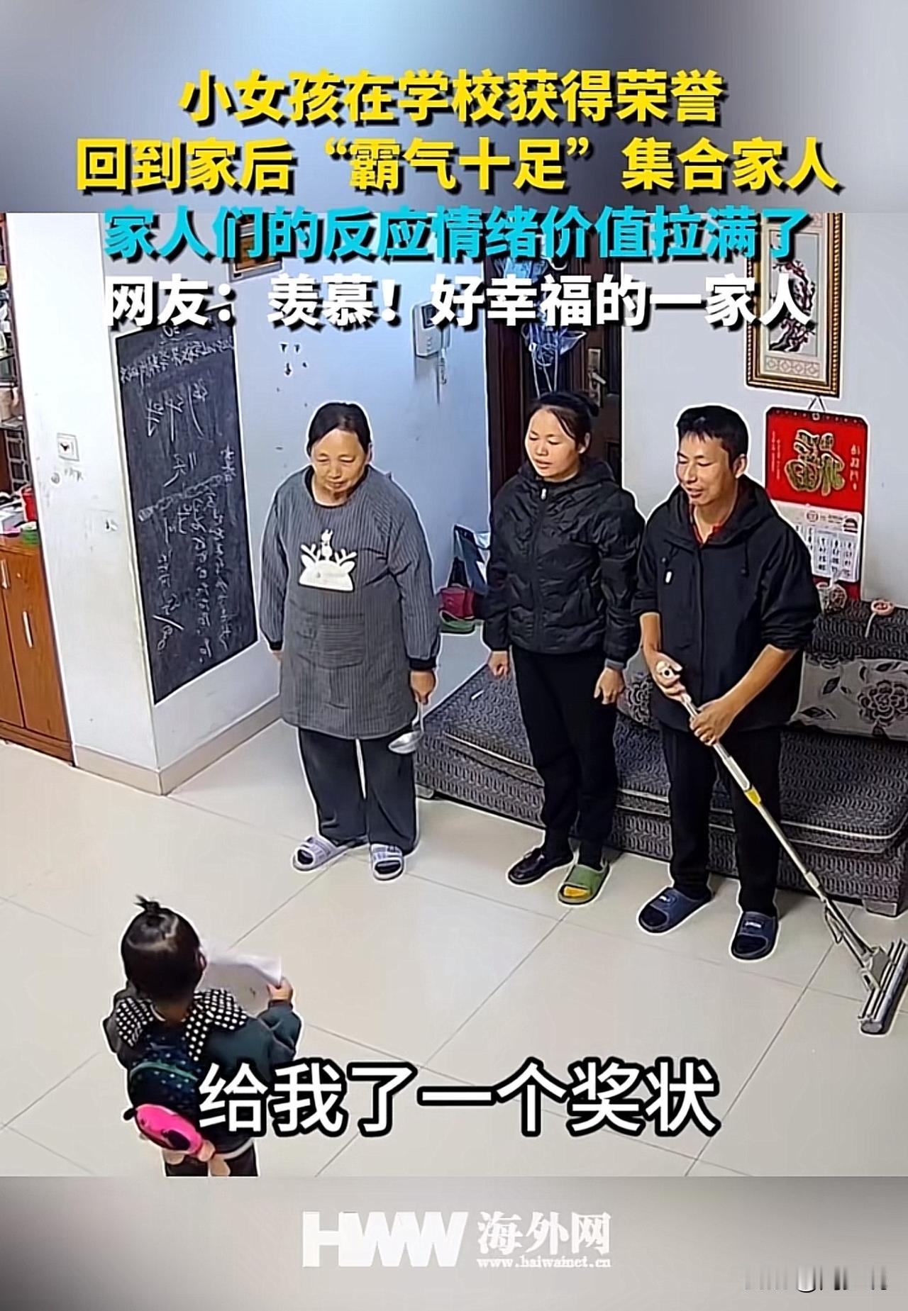 #女孩在学校获荣誉 回家霸气集合家人#萌娃带荣誉回家气场全开!全家反应太暖心,网友:这幸福谁不羡慕! 近日,一位小女孩在学校参加比赛获得一张奖状,一回到家就“气场全开”,大声召集全家人,仿佛要宣布重大喜讯,那认真又得意的模样瞬间点燃全家热情。 家人见状立刻默契配合,围聚过来满脸期待。当小女孩亮出荣誉证书时,家人纷纷露出欣慰笑容,有的鼓掌称赞,有的温柔摸头,满屋子的宠溺与欢喜,情绪价值直接拉满。 视频曝光后,不少网友纷纷表示:“这家庭氛围也太好了吧!被重视的孩子真的会闪闪发光。” 也有网友说:“萌娃的“小骄傲”太可爱了,全家的反应就是最好的鼓励。” 还有网友更是直言:“羡慕这样的家庭,孩子的每一点进步都能被用心回应。” 周少想说孩子的快乐其实很简单,一份荣誉被家人珍视,就是最温暖的力量。这个家庭的互动,藏着最好的教育方式,用陪伴和肯定滋养孩子的成长。 总而言之,这样充满爱的氛围,不仅让孩子更自信,也让我们看到,平凡生活里的幸福,就藏在这些温情瞬间里。 对于这样的家庭,大家羡慕吗?#寻美三湘# #长沙新朋友#