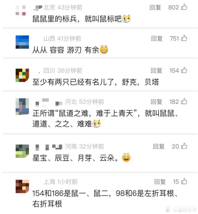 目前小鼠已经入住中国空间站,它们的编号分别为154、186、98、6,但他们还没有名字,你想给“太空小鼠”取什么名?甘肃[超话]4只太空小鼠在等你起名字神舟二十一号