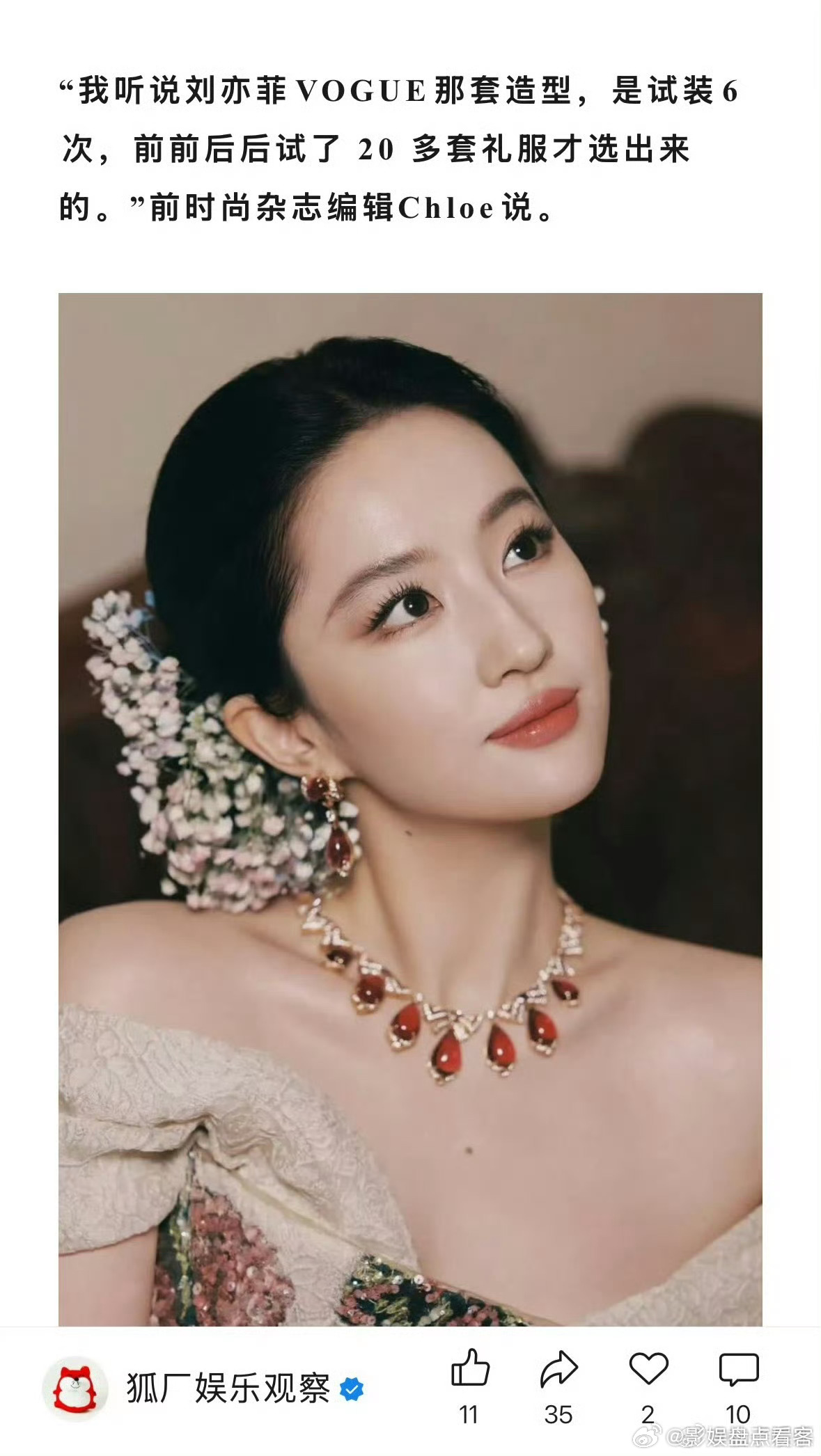 刘亦菲VOGUE造型试了20多套礼服