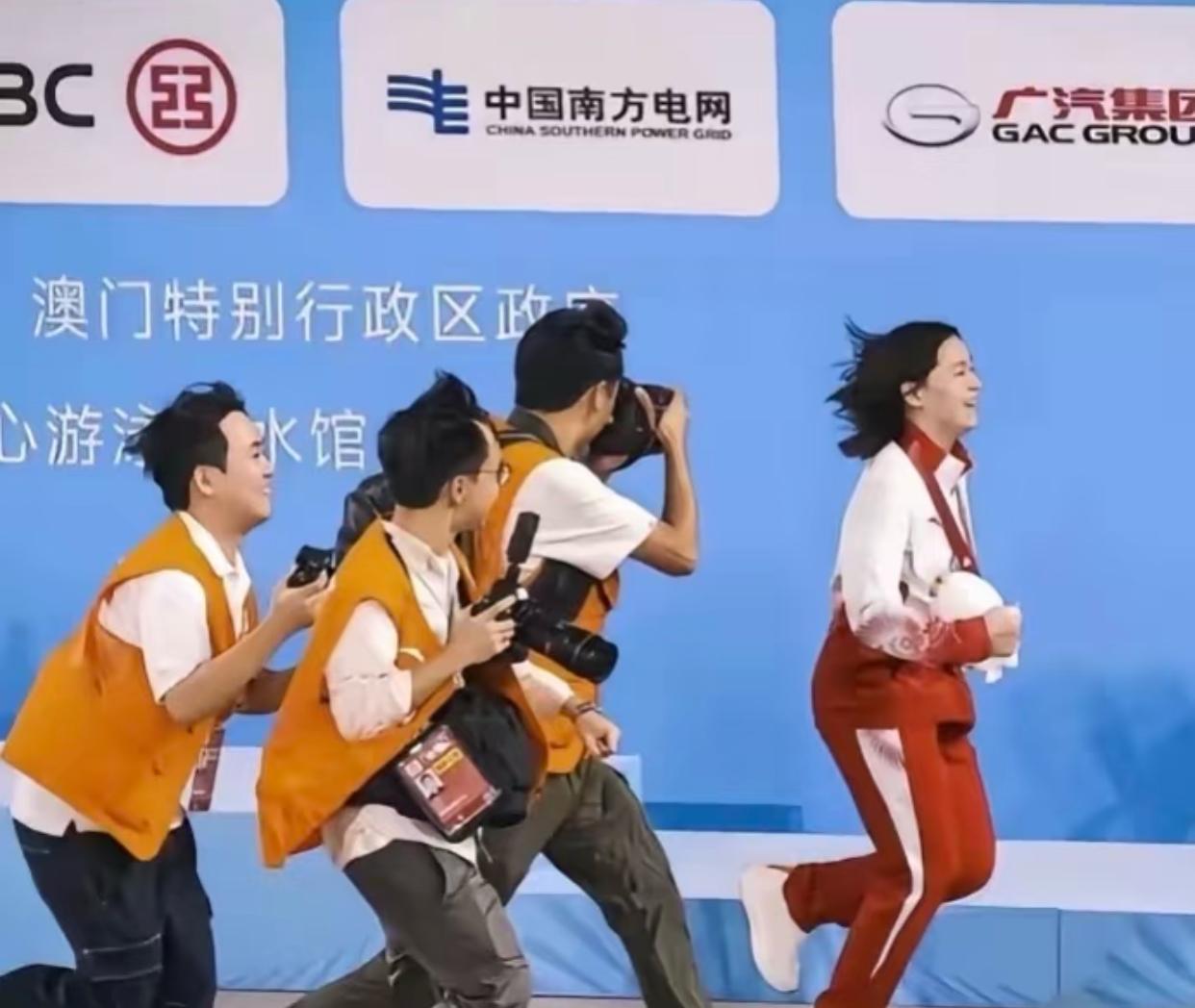 被摄像机追着跑的全红婵, 这段时间外界质疑的声音那么多, 她依然像个孩子一样, 看不出赛场的紧张刺激满眼是她青春洋溢的模样和积极向上的心态真好啊。 她不过一个18岁的女孩, 因为发育关自己已经承受了太多痛苦和压力, 她从来不说, 却又一次次用实力证明自己!
