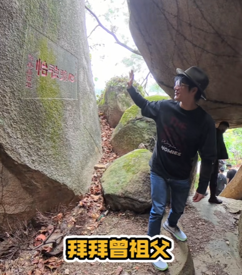 一路在巨石间攀爬,王力宏忍不住调侃:“曾祖父跑到这儿写字啊,太特别了!”