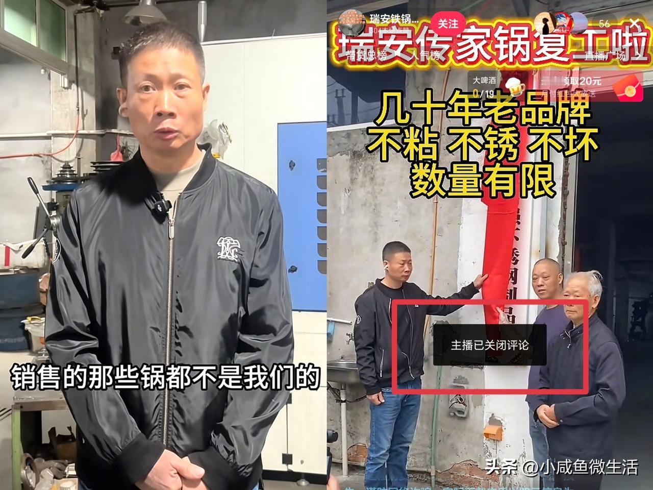 瑞安不锈钢锅工厂还是遇到问题了! 现在想要买这款铁锅的网友太多了,不到几天的时间就有100多万人关注进来,光换群都加满了100多个。 面对体量这么大的货,瑞安不锈钢锅工厂作出回应称,现在的问题就是货跟不上来,工厂太小了,生产线有限,如果有货,恐怕10万个都不够卖。 厂家负责人傅克萍也意识到问题的严重性,所以他发文回应,他没有授权任何人代理自家生产的传家铁锅,现在网上售卖的都是假的,他们家的锅还要等一段时间,让大家不要买错了。 我也去看了冒牌货的直播,一个个都贼聪明的,不管是画面还是话术,全都录屏的,他们怕被打假,还特意把评论功能关了,这会估计有不少人上当受骗了。