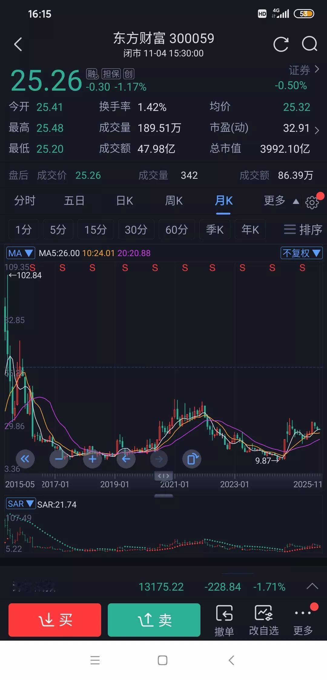 东方财富今年完美错过牛市? 今年大盘都涨到四千了,可持有东方财富的股民却像坐了冷板凳(也可能哭晕在厕所)。东财今年涨幅几乎为0,几乎等于没涨,完美错过这轮牛市,真是让人难受得很。 东方财富是互联网券商头部,有品牌认知和用户黏性的护城河,数据科技投入也让它有产品迭代优势,牛市交易量能拉高基本面。可是股价就是不涨,大盘一路高歌,它却跌跌不休。 不过看样子应该是要蓄势待发了, 1.今年业绩是非常好 2.大机构在24.7接盘了其减持的 3.股东人数大幅减少 今年还只有两个月了,牛市的券商不可能一年涨幅为零吧?