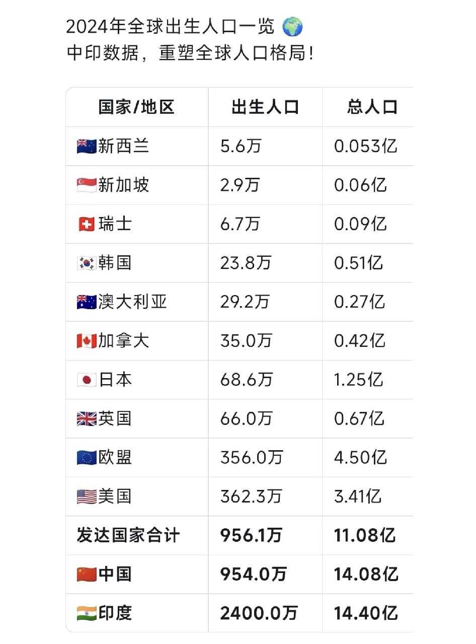 14亿中国出生人口竟被11亿人口发达国家反超。 中国➕所有发达国家出生人口也<印度。话说印度和非洲南部国家比,谁的生活质量更好,降普遍性的。
