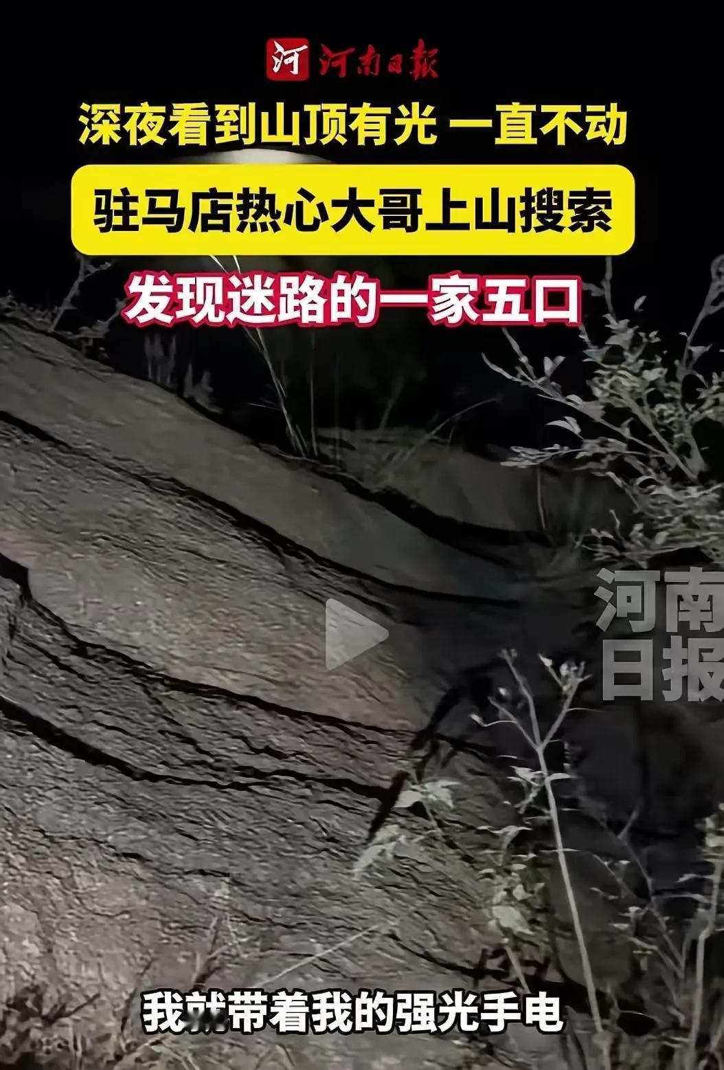 河南驻马店,发生了一件令人暖心的事情。 一名男子深夜在山下看到山顶有光亮,便上