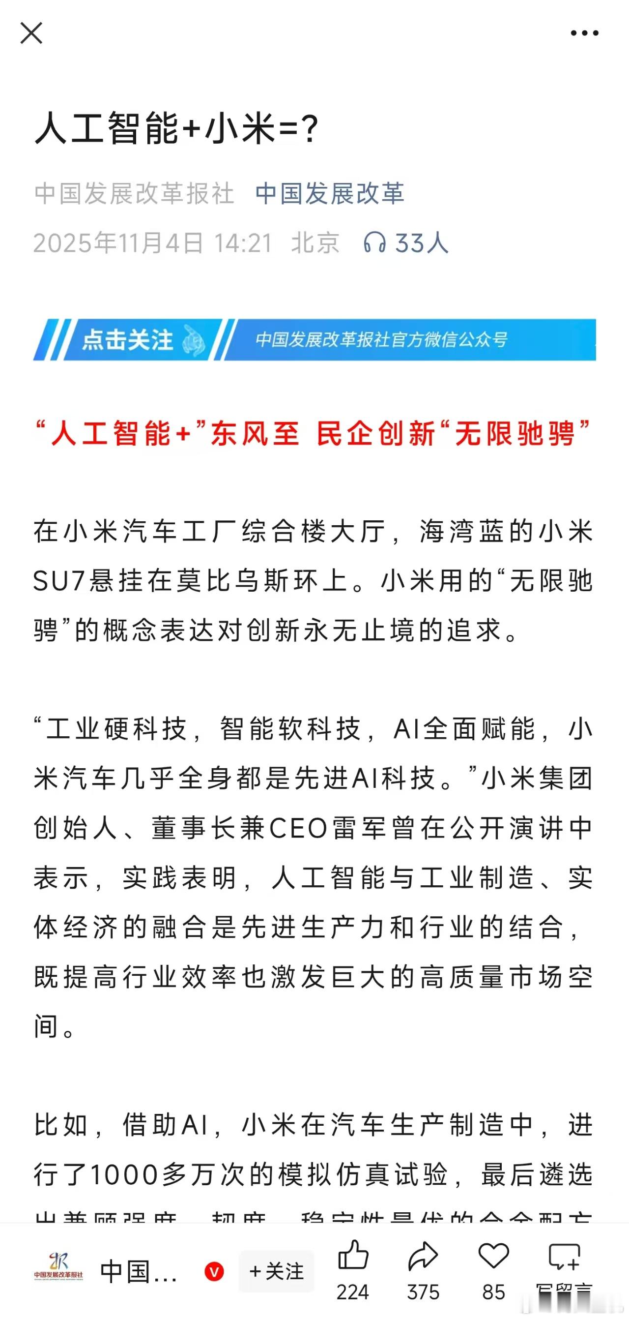 真的很离谱,一边央妈最近更是高密度的点赞小米,包括手机,汽车,芯片,大家电工厂都上了央妈的报道。甚至今天中国发展改革社还专门以人工智能+小米为题发了文,对于小米实力相当的肯定。