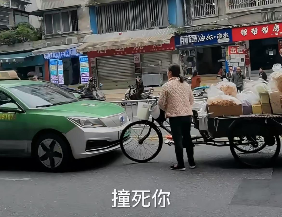 成都街头大姐骑三轮车逆行怼上了的士,大声和司机理论,说自己行车没有错,要司机让路。司机心想哪里来的不讲道理的破娘,自己骑车连左右不分,虽然是非机动车,但是比的士占地面积还大,全然没有一点交通意识。旁边的人看不过去,纷纷指责大姐,说你逆行,撞了也白撞,赶紧让路。女司机逆行 三轮车老太太 单行路逆行