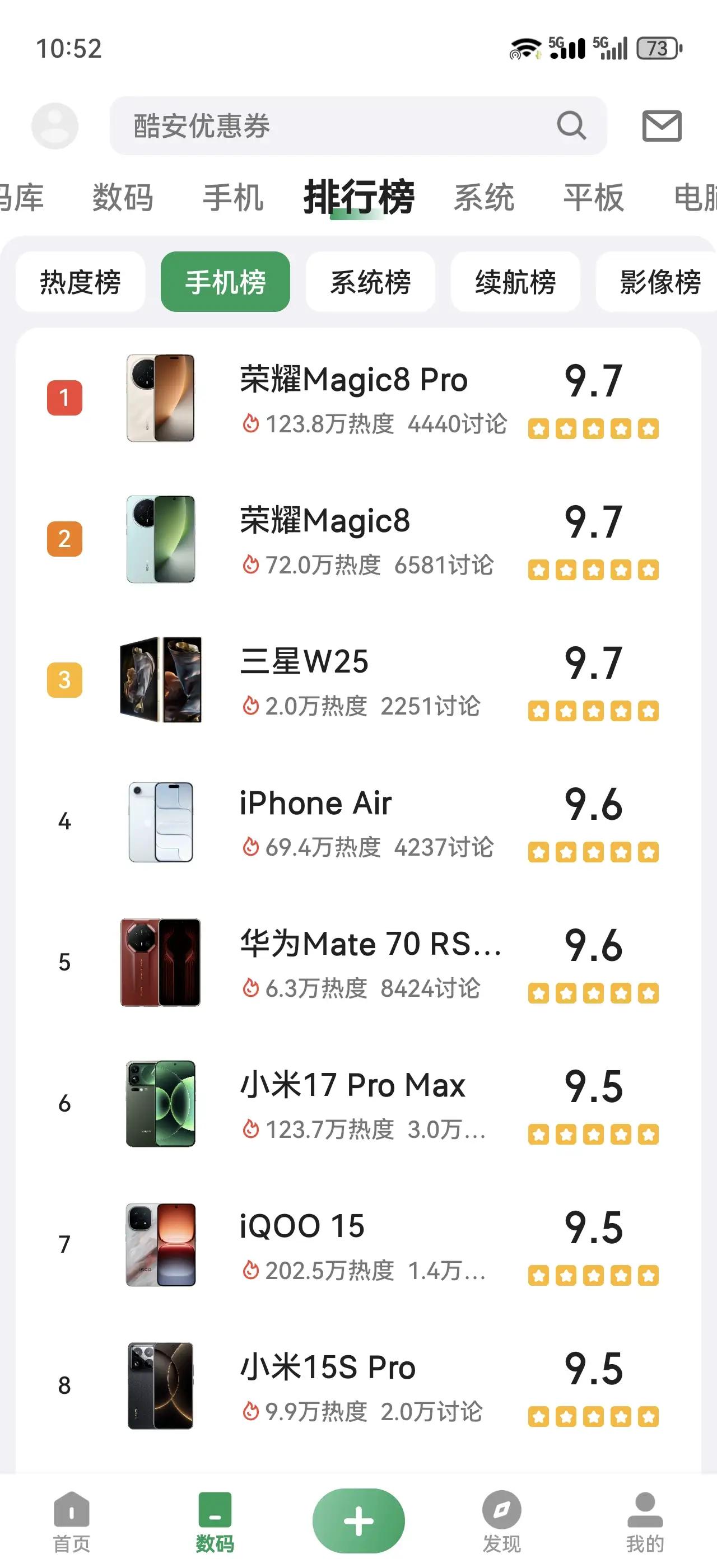 家人们谁懂啊!荣耀Magic8 Pro直接杀疯啦🔥 在酷安平台上那叫一个“独孤求败”!手机榜单第一,性能榜单也第一,妥妥的“双料冠军”🏆 有图有真相,这实力简直杠杠的,就问还有谁!