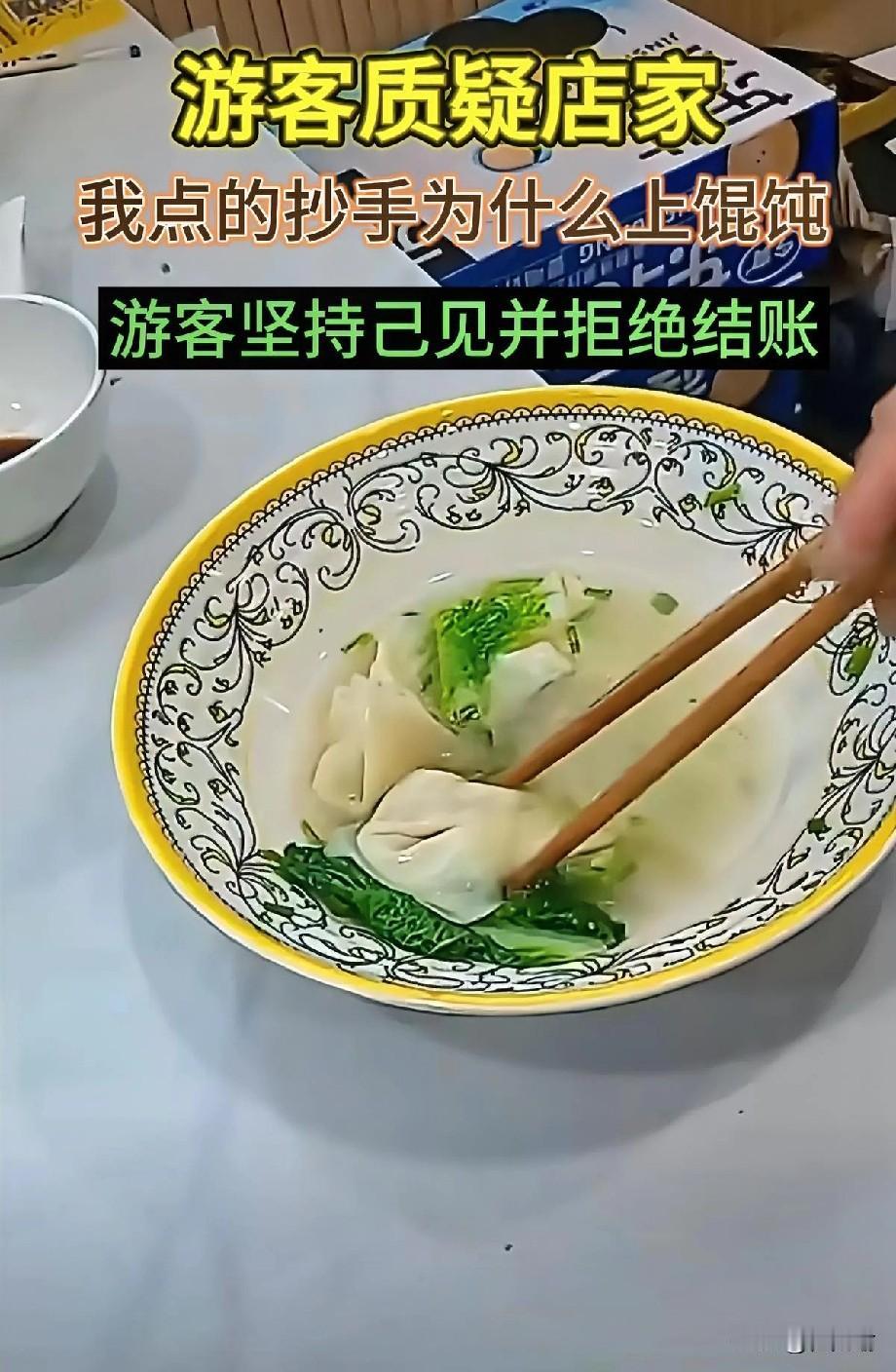 成都,一餐馆来了一名女游客点了一碗抄手吃,没想到她吃完后竟拒绝付钱,理由是她觉得自己点的明明是抄手,但老板给她上成了馄饨。 当时食物端上来的时候女子没有说话,吃完后她又说抄手和馄饨不是一个东西,她老家的抄手跟这个不一样,这是欺骗。她一口咬定店家上错了,不仅不肯付钱,还拿着手机拍来拍去,说要打电话投诉。 店家很委屈,反复解释在川渝这边,抄手就是馄饨的叫法,就是汤底和包法稍微有点不一样,东西是对的。 周围吃惯了的本地人也帮着劝说他们从小就这么叫,这就是正宗抄手啊,但女游客油盐不进,死活不认。 其实这事就是饮食习惯上的差异,同一个东西在不同地方叫法差很远,北方大多叫馄饨,川渝叫抄手,广东叫云吞,湖北还叫包面,本质都是薄皮包肉馅的汤食,顶多是馅料、汤味有点区别。 游客是按自己老家的叫法和样子来判断的,但店家是按本地习惯来的,没觉得有什么问题。 有网友开玩笑说:“这要是去武汉点豆皮,发现不是豆制品,岂不是要更生气?”还有人觉得,吃饭付钱是基本规矩,拿这个当理由拒付,有点说不过去。 旅游本来就是体验不同地方的文化,饮食差异也是其中一部分。多一份包容,多一点沟通,何必因为一碗抄手闹得不愉快?旅途的意义是感受风土人情,而非纠结于名称的差异。