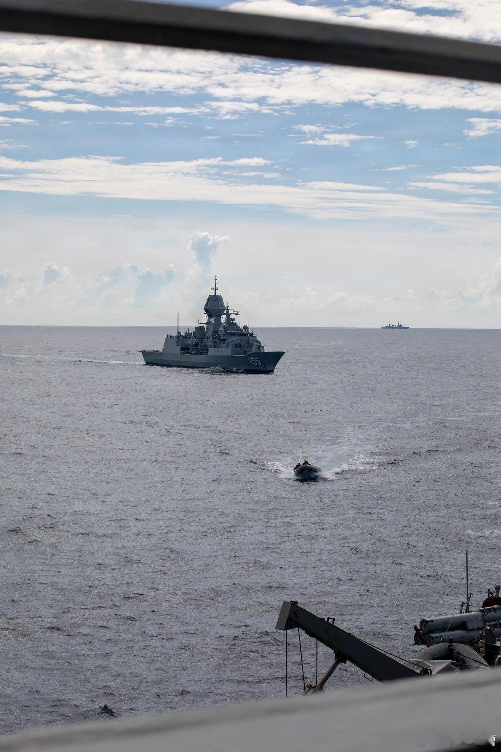 上个月底,菲律宾纠集美国、澳大利亚、新西兰,四个国家派了四艘军舰在南海搞联合军演