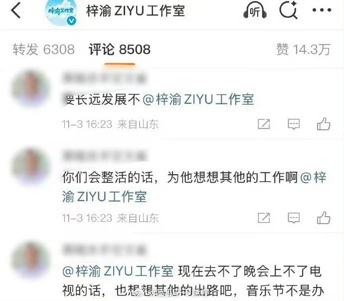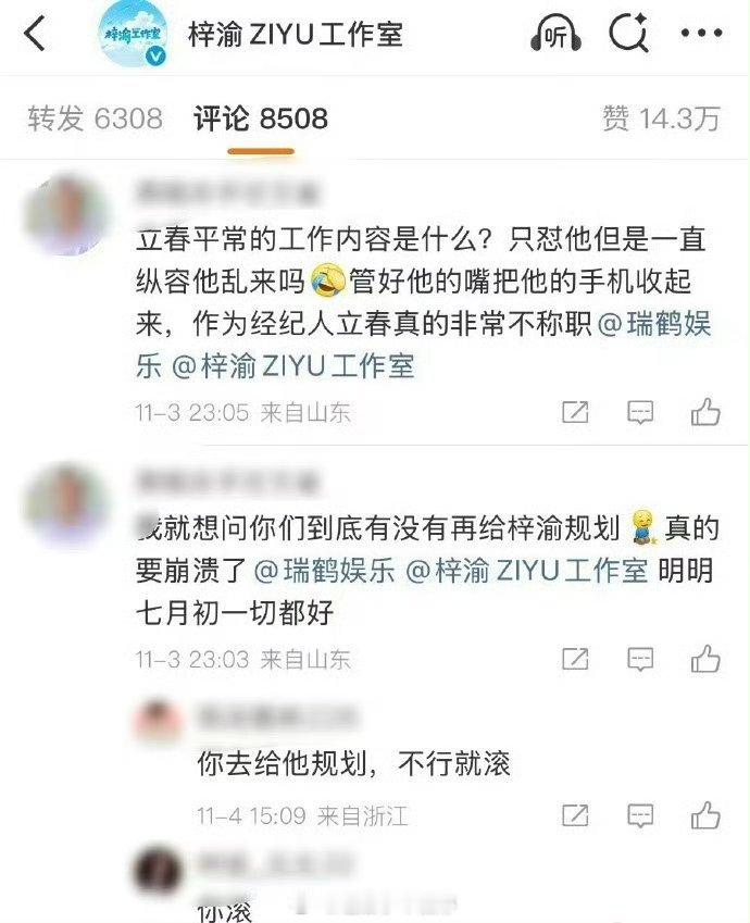 梓渝粉丝向工作室维权,说工作室没有给梓渝规划好事业,没有考虑长远发展[傻眼][傻