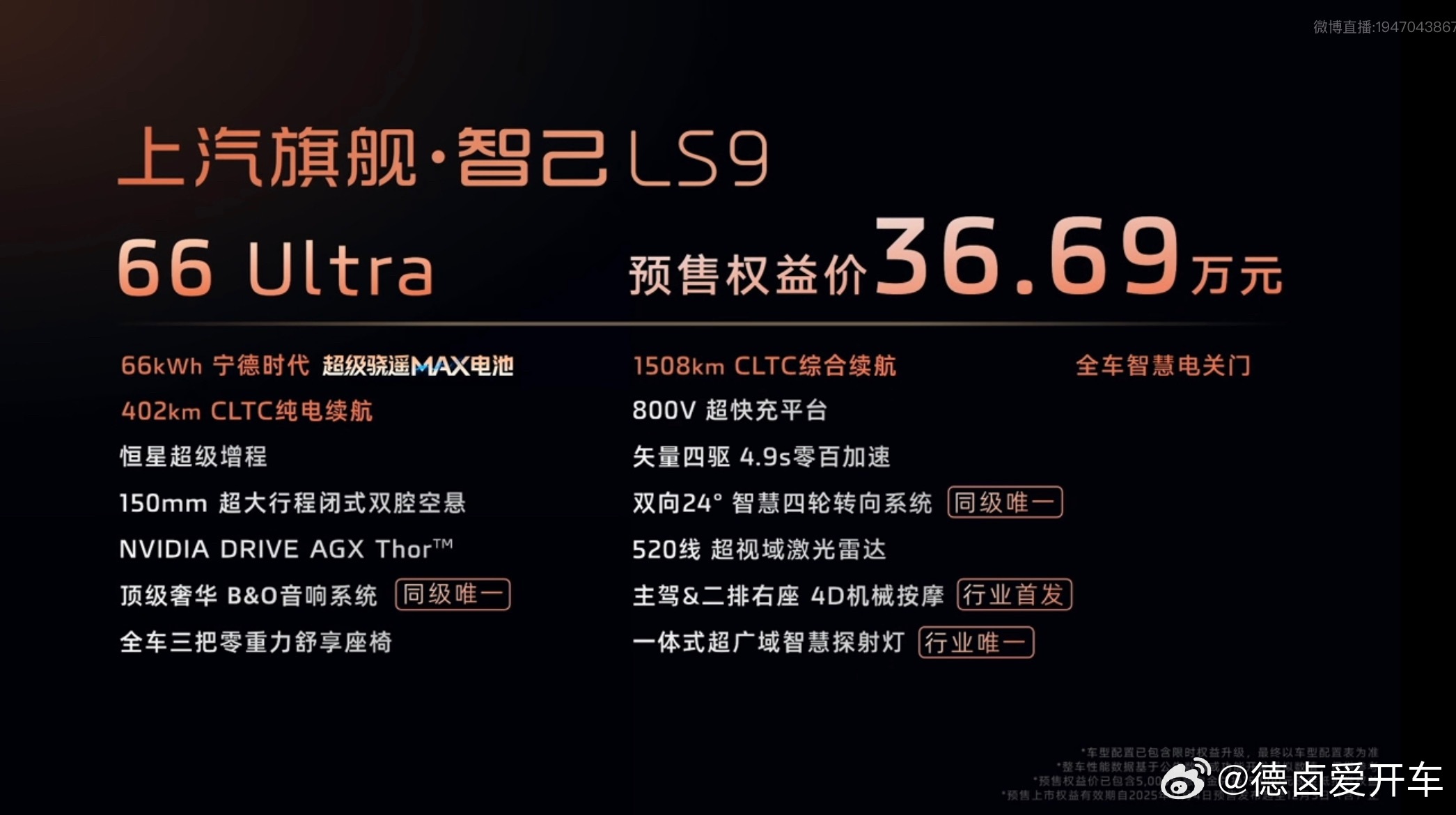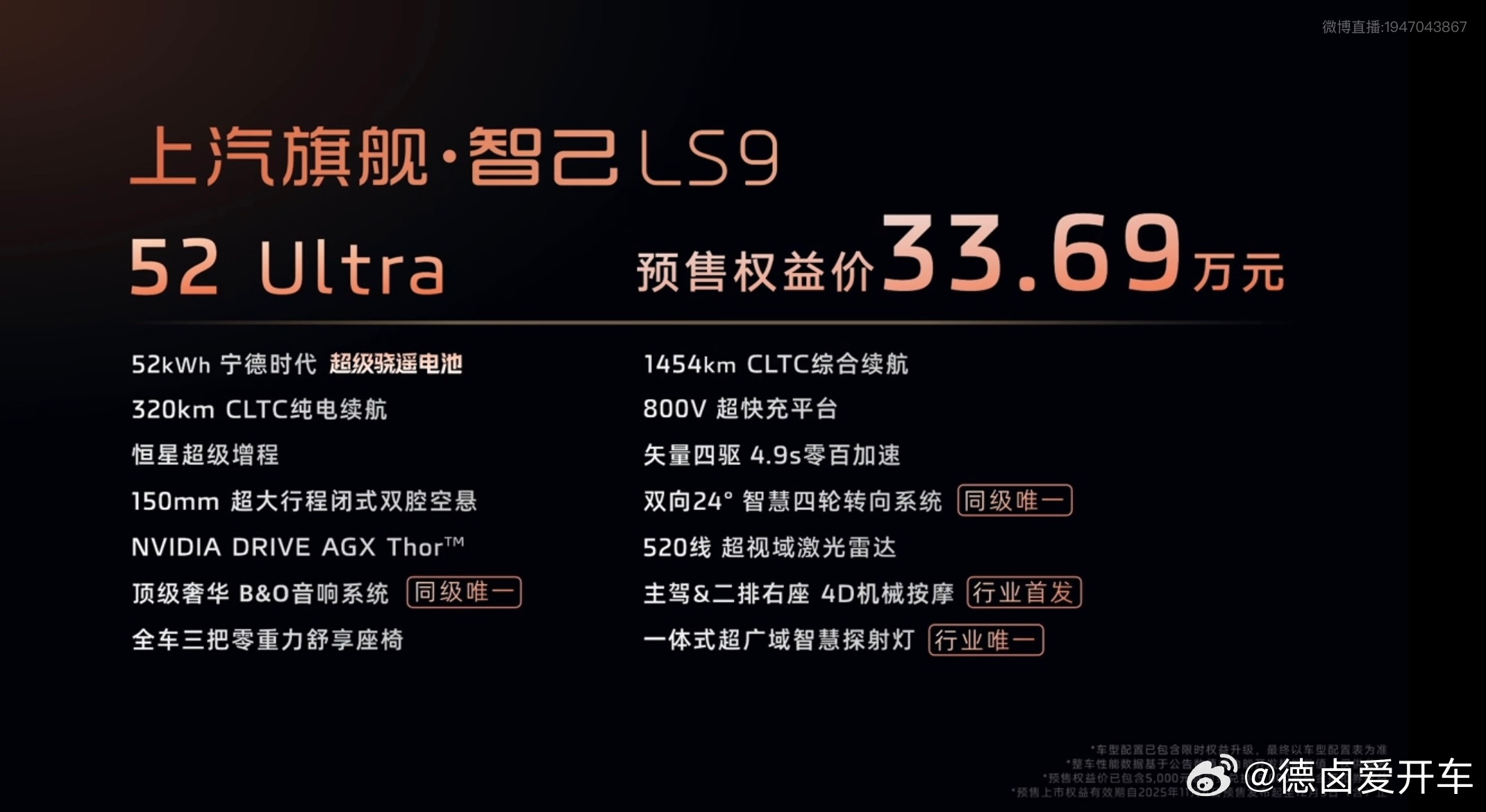 上汽旗舰智己LS9 预售价公布,33.69万元起。