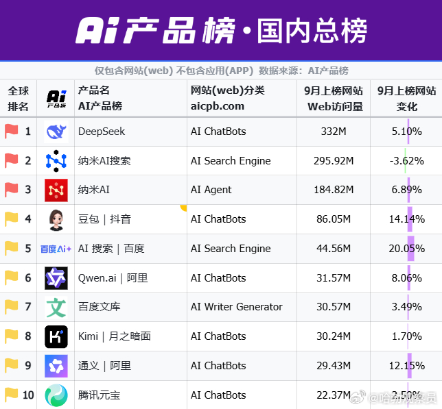 TOP10榜单:9月AI大模型使用情况!热门微博科技快讯人工智能AI大模型