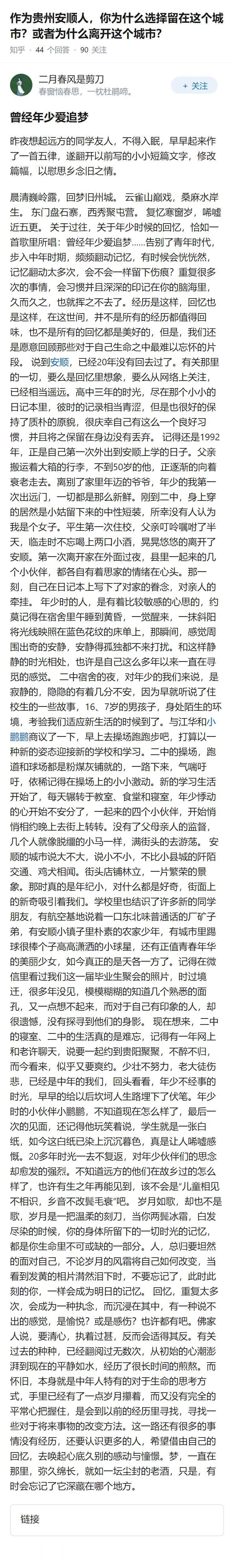 作为贵州安顺人,你为什么选择留在这个城市?或者为什么离开这个城市?