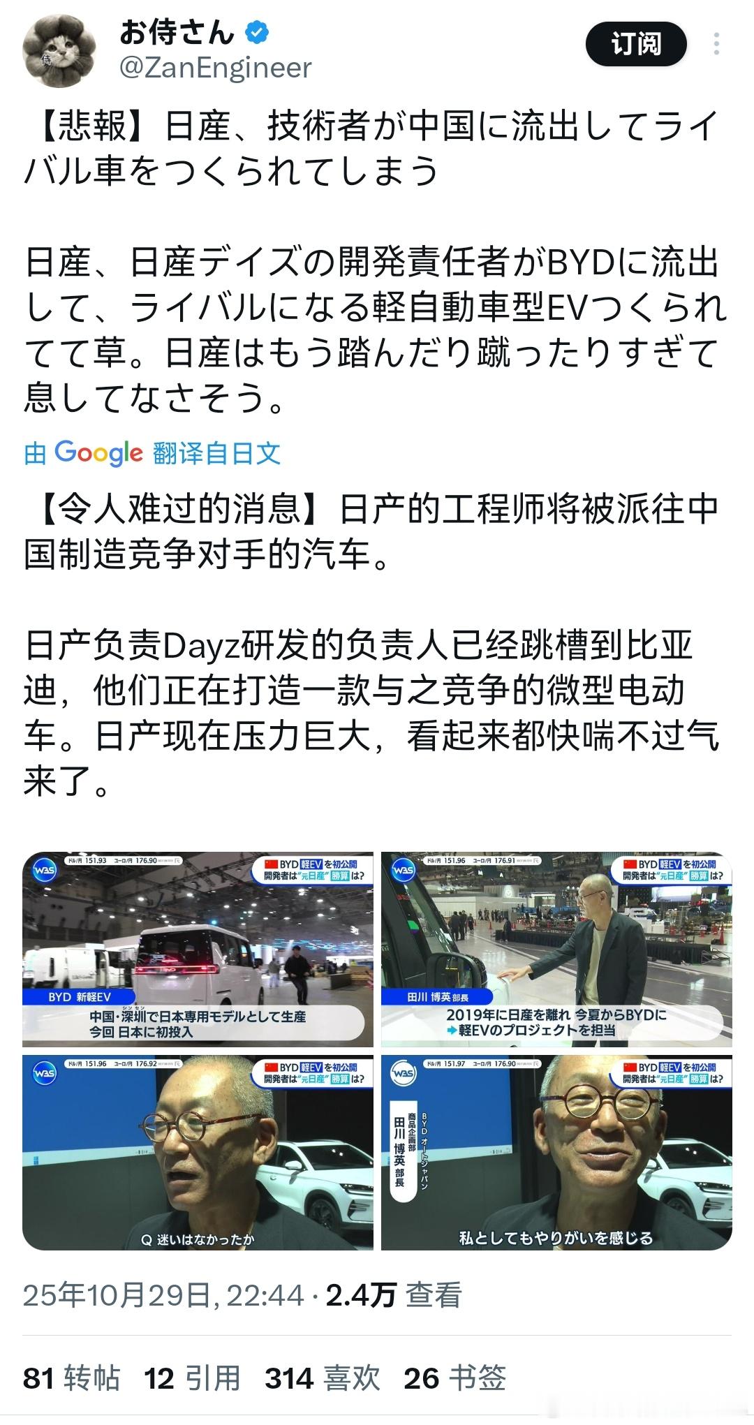 原来迪子的日本本土产品团队负责人还是日产那边挖来的,也合理,这样本土化确实少走弯