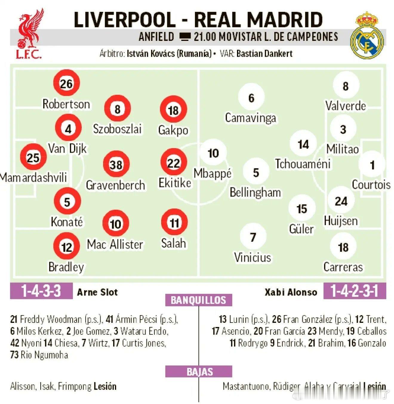马卡预测的首发阵容,利物浦的首发阵容跟维拉的首发差不多 罗伯逊和布拉德利继续边后卫,迈巴赫中场
