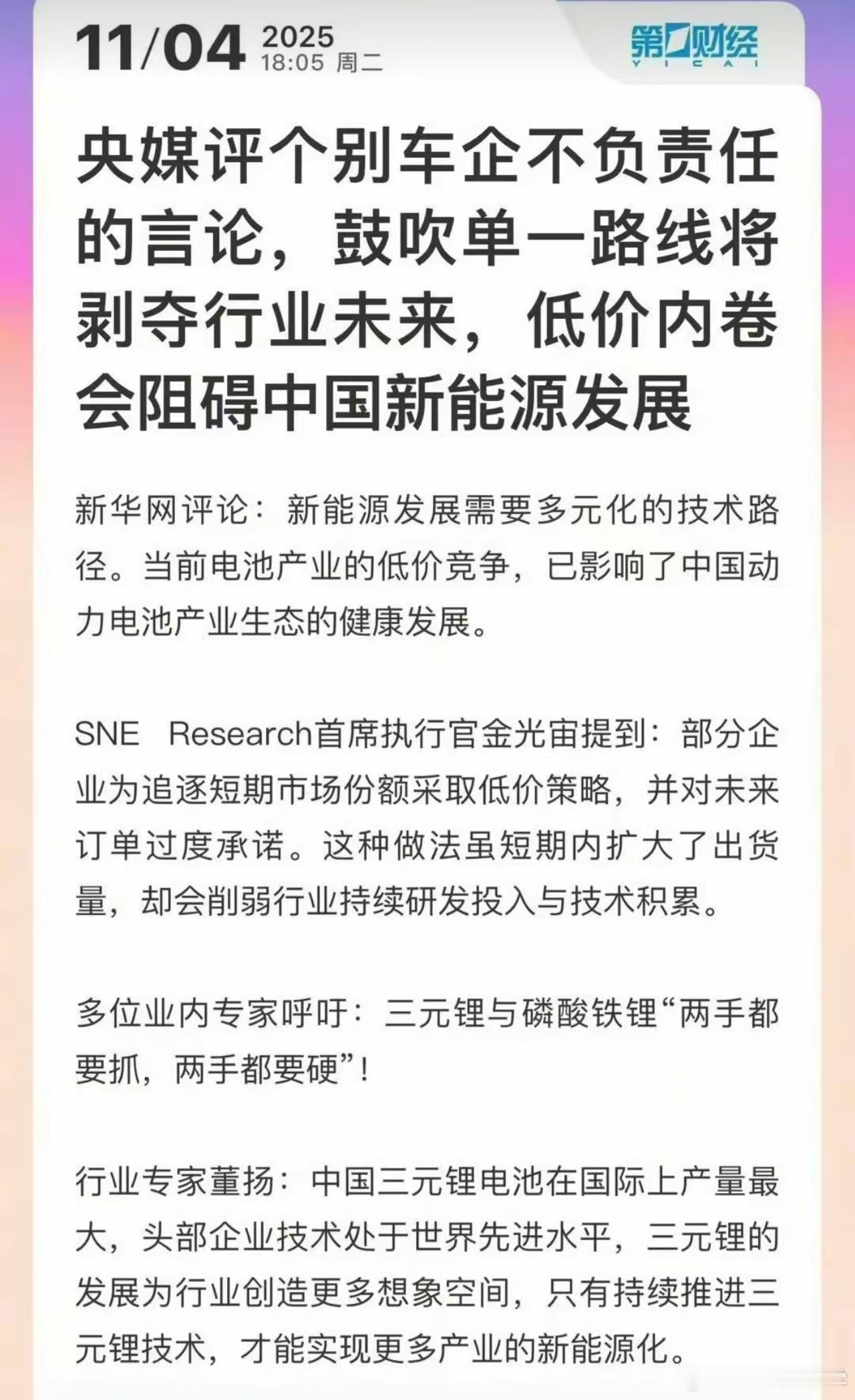 三元锂和磷酸铁锂并不是什么不可调和的矛盾,也并没有必要搞如此对立。