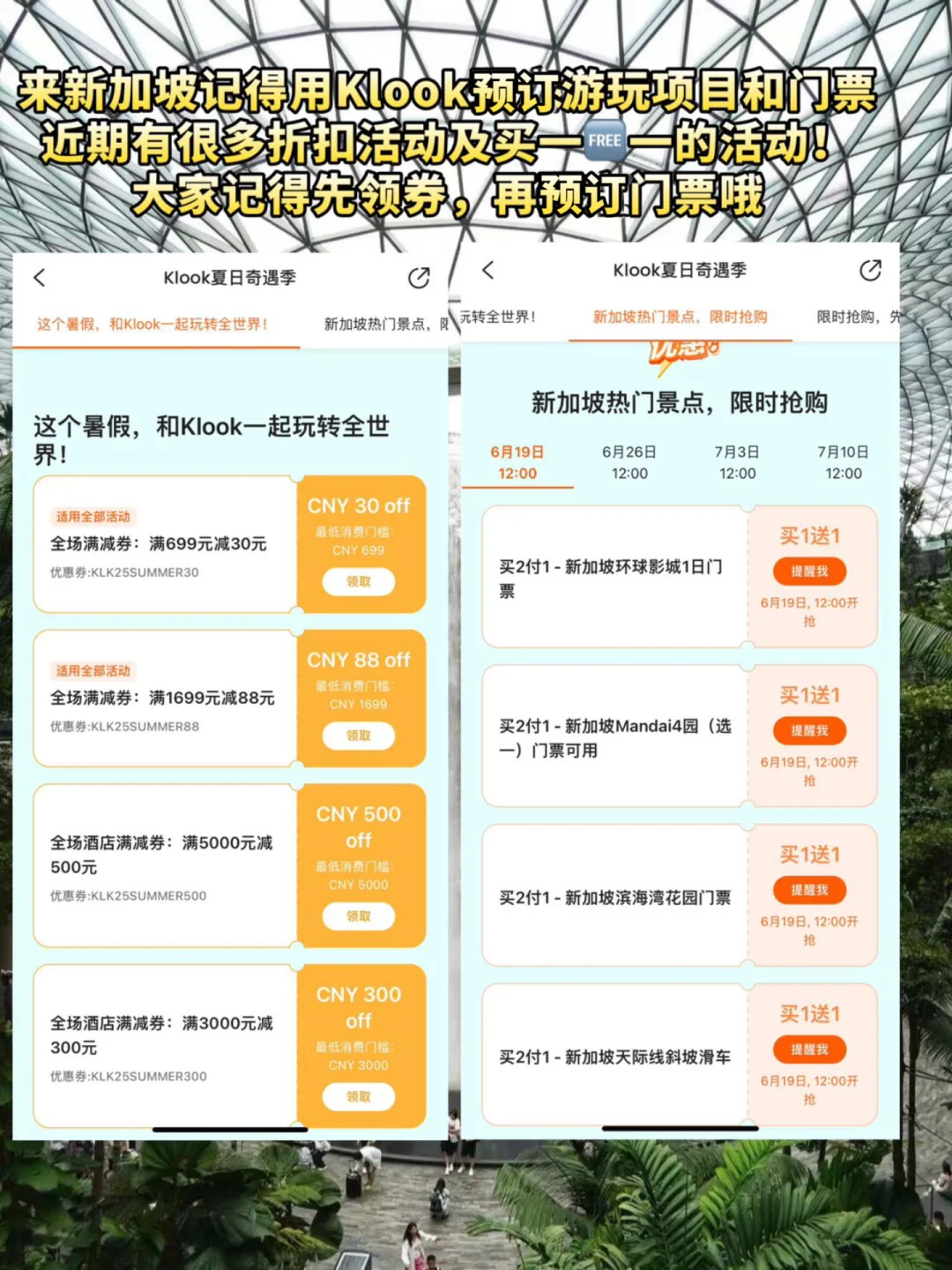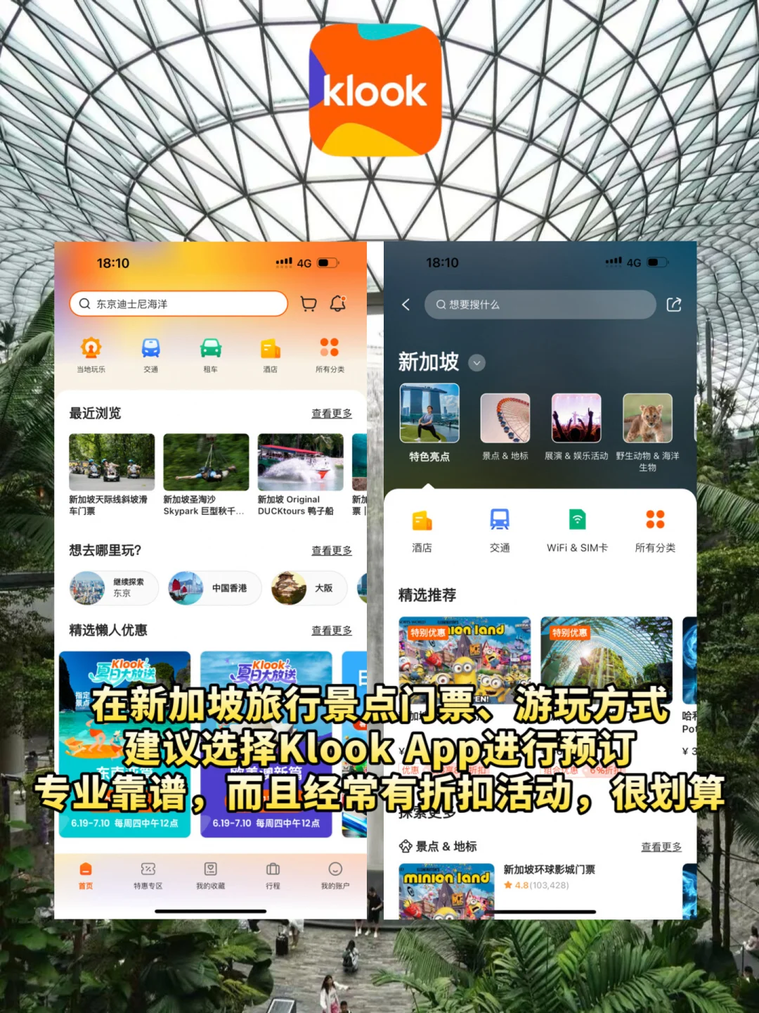 以上线路景点门票都可以在Klook上预订!我在境外旅行都会在Klook上预订门票,因为价格上很有优势,大部分门票靠二维码就可以直接入园了!而且Klook在新加坡有很多门票套餐,比单独预订要更合适!
