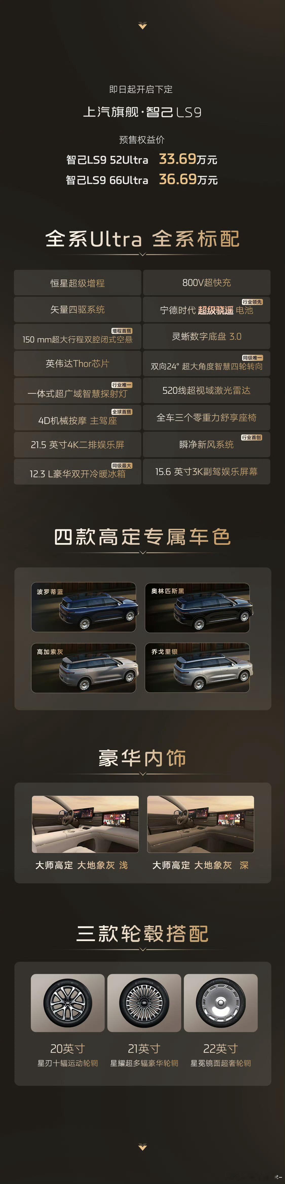 共推出52 Ultra与66 Ultra两个版本,预售权益价分别为33.69万元与36.69万元,定位大六座旗舰SUV。