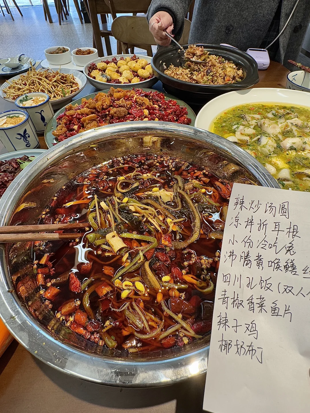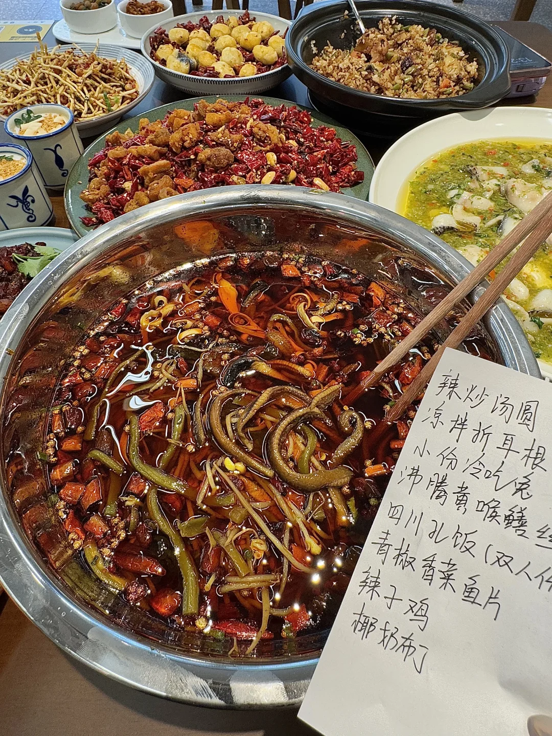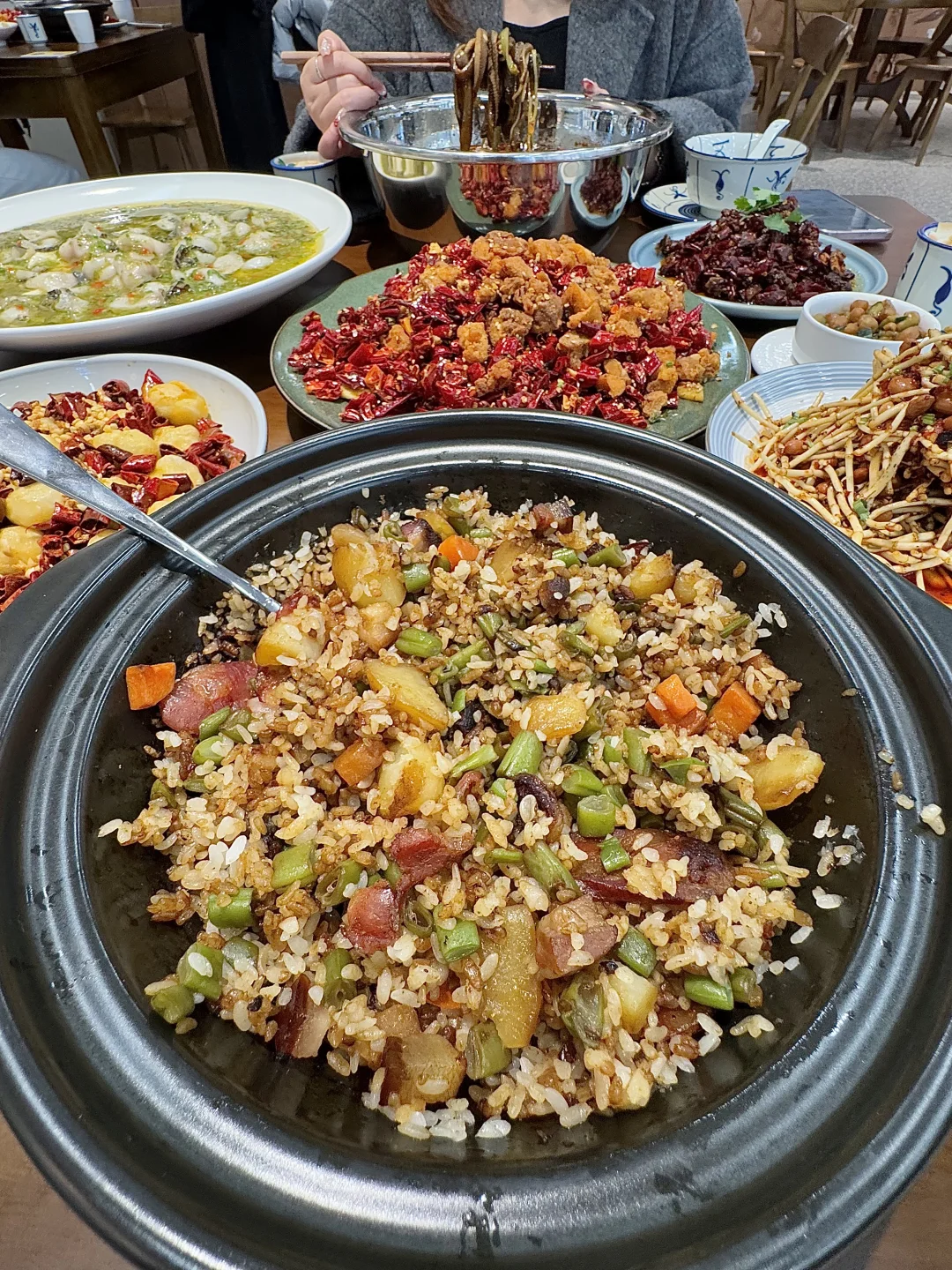 好吃哭😭~孔饭真是直戳我的心巴,腊肉咸香~土豆和四季豆软糯入味,锅巴脆脆的泰香了!! 沸腾黄喉鳝丝、炒炒汤圆、青椒香菜鱼片…每一个都吼吼吃!辣的嘶哈嘶哈也停不下嘴……