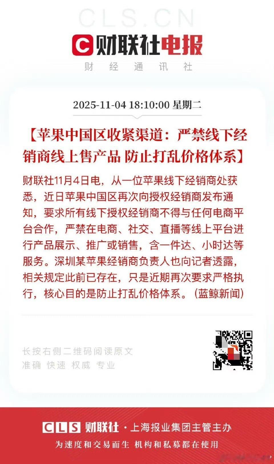 苹果严禁线下经销商线上售产品的确,如果这样的话打乱价格体系。话说你用的是苹果手机