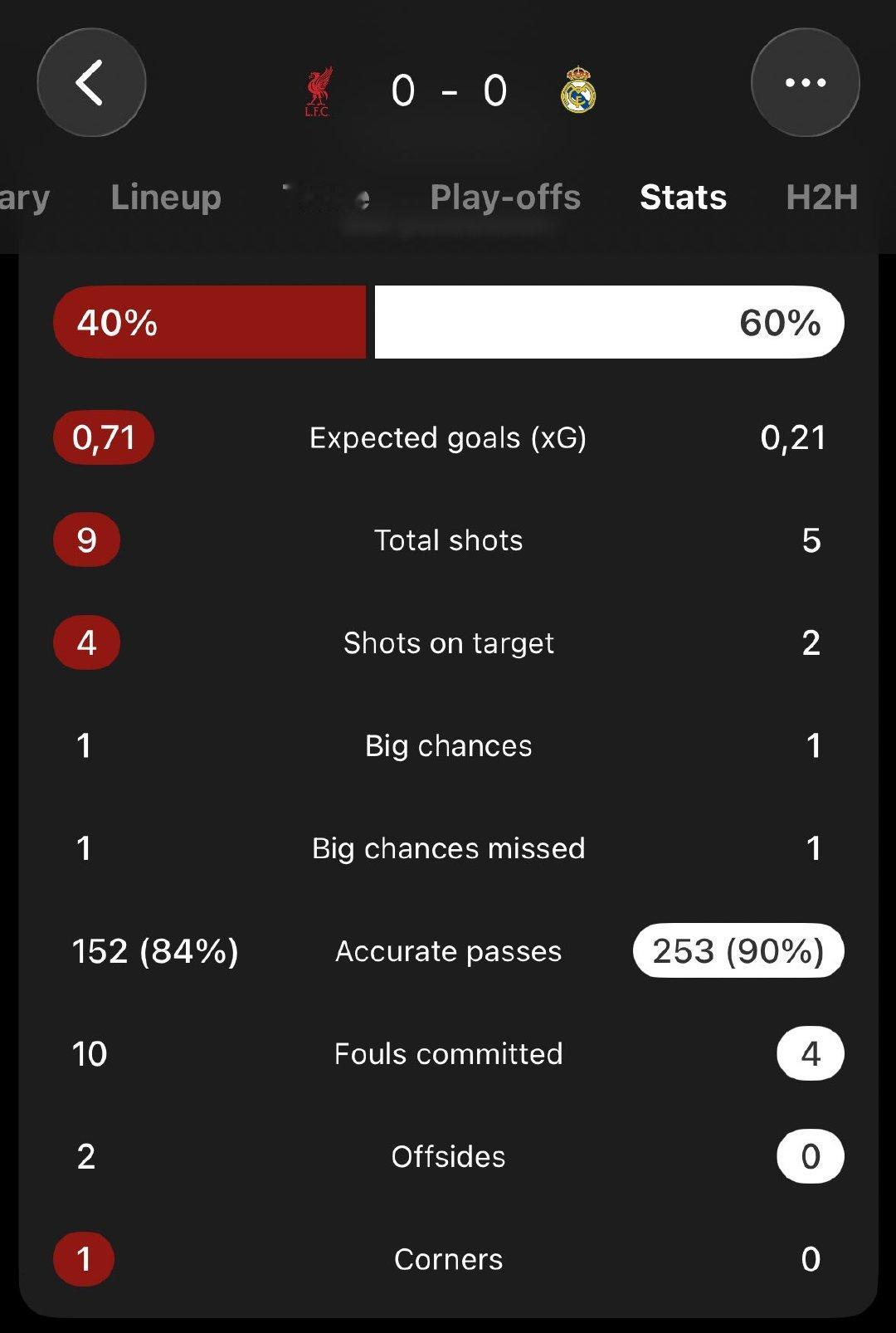 上半场数据。欧冠联赛利物浦vs皇马halamadrid