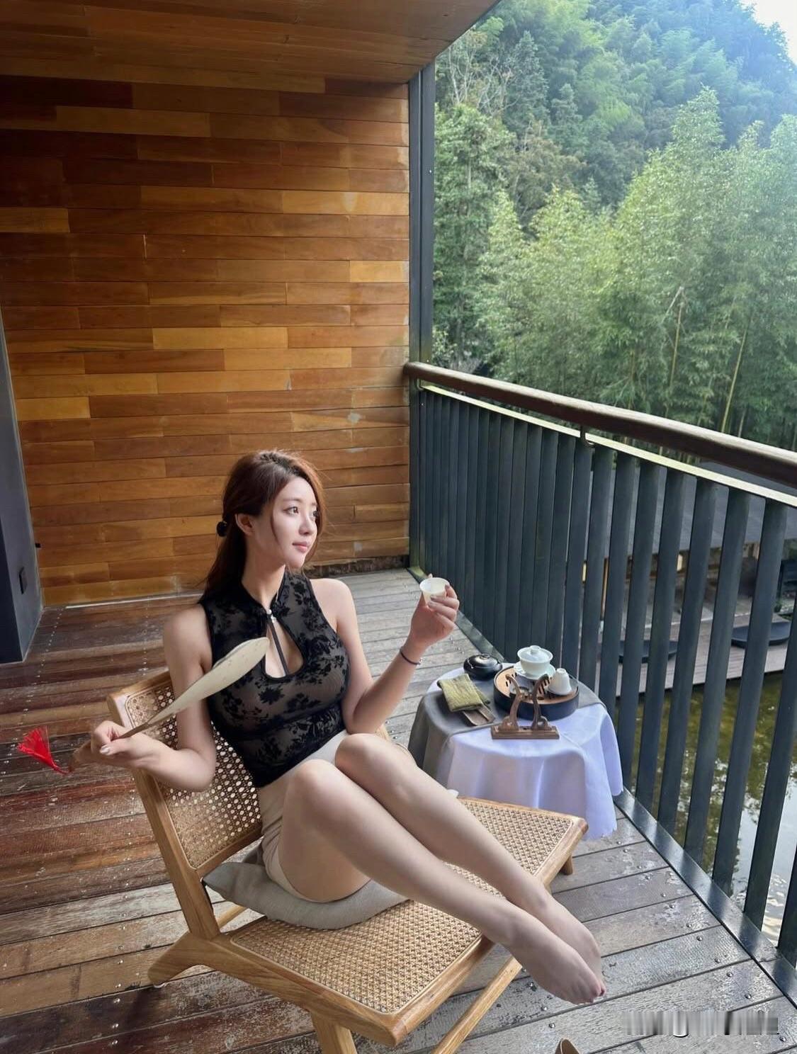 在山间木屋的阳台上,享受宁静的下午茶时光。