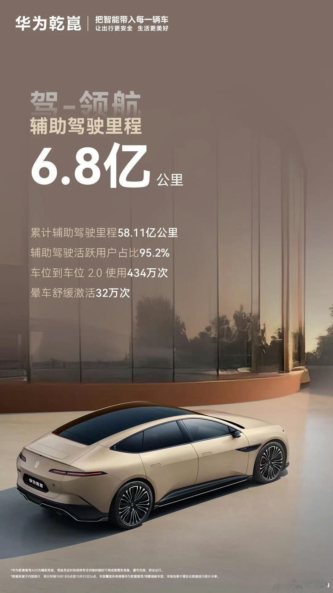 孙少军:华为发布10月出行报告,这次把长图换成了6张图,直观很多了! 这个数据真的是非常的庞大,随着车辆的交付量越来越多,这个数据累积的速度也会越来越快。 而且这个是包含所有搭载华为乾坤智驾的车型的,估计到明年,现在这时候就不是一个量级了。 各位是怎么看的?欢迎评论区留言。