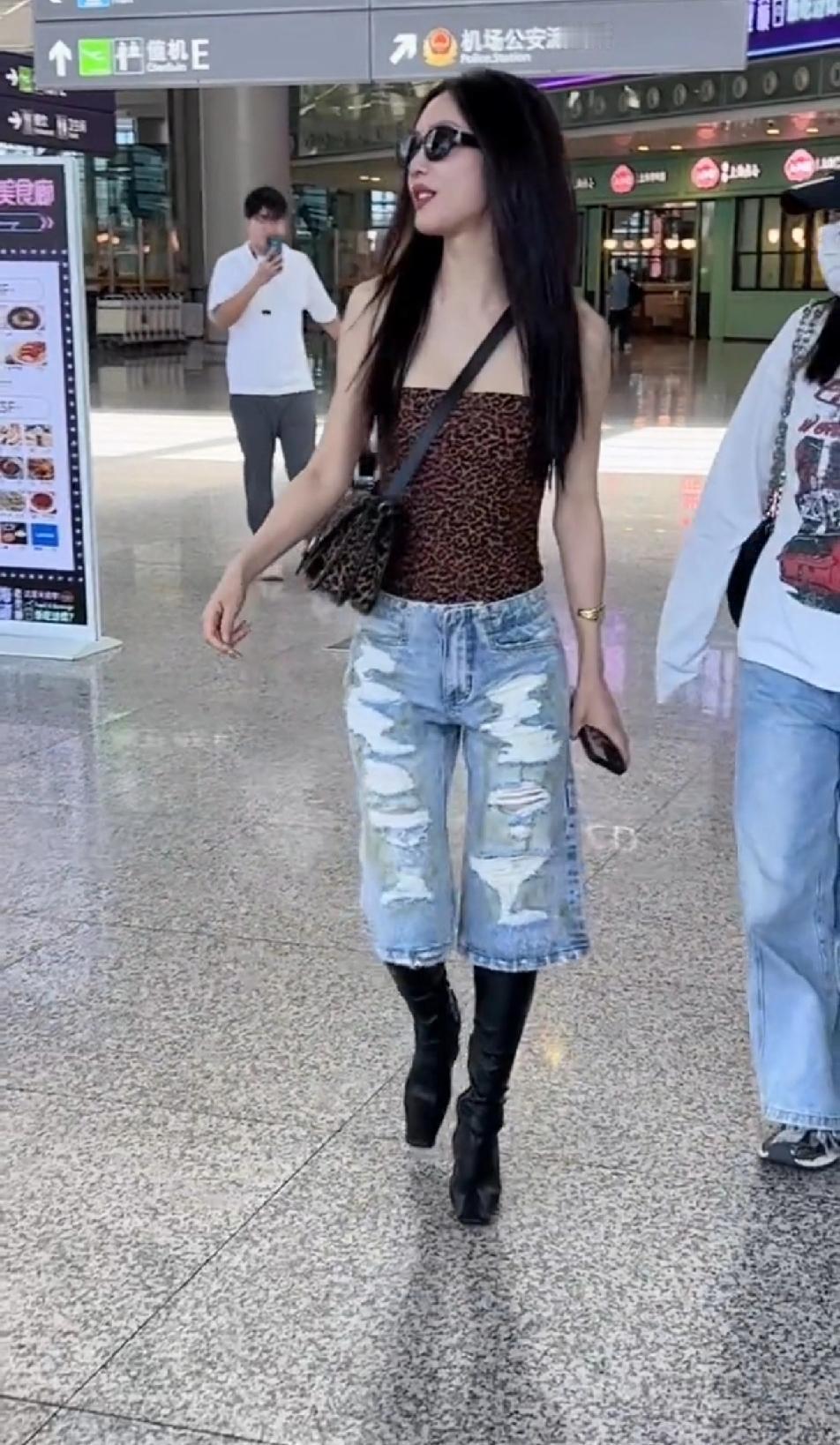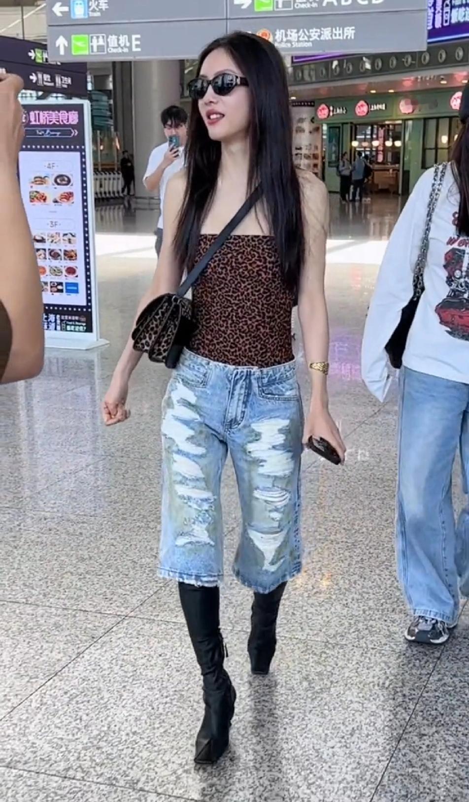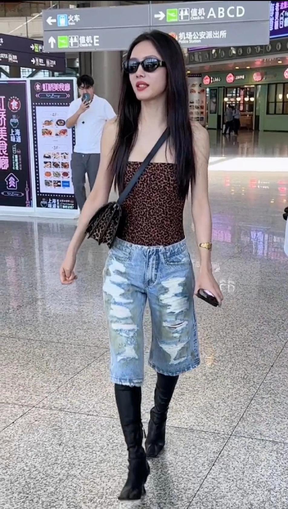 蔡文静穿的这是什么?是打算靠奇葩穿搭上热搜吗?她的造型师还有没有点基本的职业素养?从头到尾没有一件单品能让人理解,豹纹背心,破洞的中腿裤,和尖头长靴,是什么极品想到把这几个东西搭在一起的?问题是蔡文静出门前都不自己照一下镜子吗?感觉旁边的助理都不想和蔡文静并排走,估计怕丢人~~姐,真的,把这一身全扔了,一件也不留~