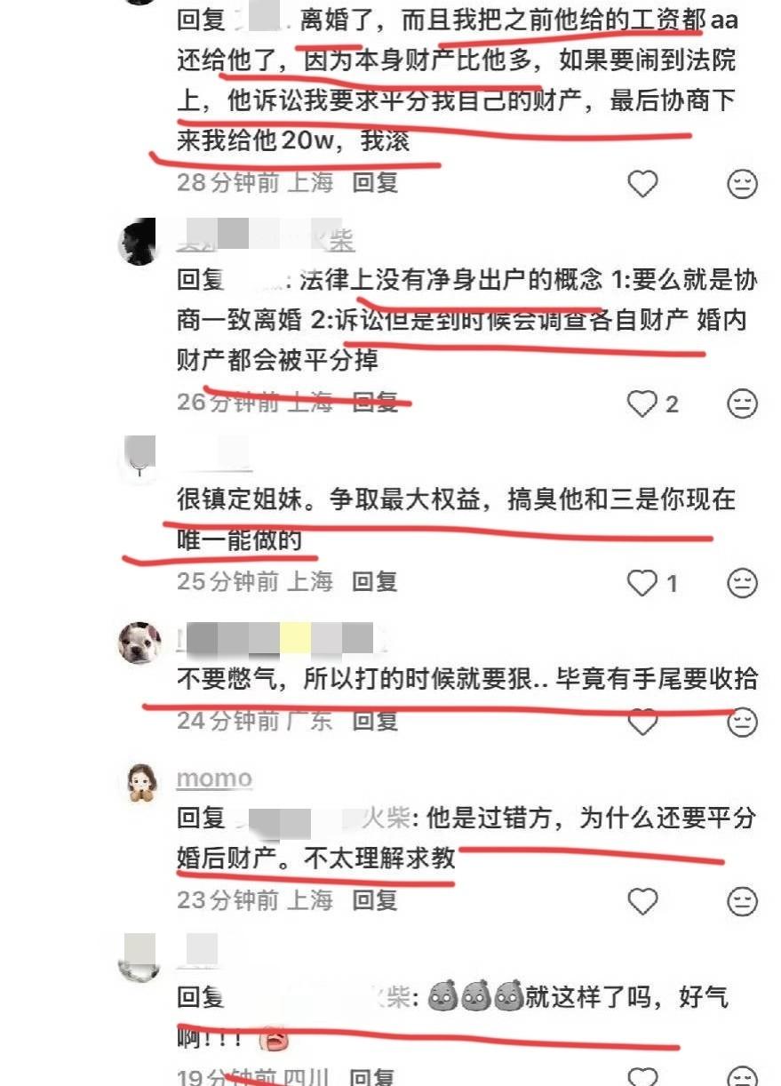 上海原配抓小三产检事件,疑似原配回应已经离婚。 这场律师与乘务长之间的爱情风波,可以说很快就风平浪静,只有一则视频被疯传,然后就没有后续了。 目前从网友给的截图中的评论有人称自己是原配当事人,承认已经离婚。离婚的条件是返还曾经男子AA给自己的那部分工资。男的还要求分割两人婚内财产不然就要走程序离婚,遭到原配拒绝,苦于这种背景下原配又与男子达成协议,称又给男的20万作为协议离婚的补偿。 网友看了这样的补偿都无法直视,居然还给过错方补偿资金,这男的真敢要。据悉原配家境优渥,所以20万只是一个小数目,用这20万在买人生一个自由之身。这件事只是苦了原配的付出,青春的丧失,跟错了人,让自己的婚姻不幸福。 回头看看这件事的来龙去脉,真的让人心里堵得慌。那位原配妻子带着母亲去医院做检查,谁能想到就在停车场撞见自己的丈夫陪着别的女人产检。这种电视剧都不敢这么编的情节,竟然在现实生活里活生生上演了。 更让人心寒的是那位许律师面对妻子和岳母的质问,不但没有一丝愧疚,反而冷冰冰地甩出一句她哪都比你好。这种话简直像刀子一样扎心,多年的夫妻情分在他眼里似乎一文不值。 事后这位许律师发了个朋友圈道歉,说已经向律所提交了辞呈。可这道歉信写得官腔十足,通篇最愧疚的是对各方家人造成的伤害,唯独对被他伤害最深的妻子和孩子轻描淡写。明眼人一看就知道,这哪里是真心悔过,分明是为了保住最后一点体面的危机公关。 关于原配同意给男方20万才离成婚的这个结果,很多网友都替她感到不值。但仔细想想这或许正是这位原配妻子的聪明之处。她本身也是律师,怎么可能不清楚这里面的利害关系。如果真要走诉讼程序,耗时耗力不说,婚内财产还可能被平分。长痛不如短痛,花20万买个干脆利落,摆脱这段令人窒息的婚姻,对她来说也许是最明智的选择。 这件事给我们敲响了警钟,婚姻这件事真的不能光看表面。看起来般配的两个人,背地里可能早已千疮百孔。那位许律师在外是年入百万的精英律师,在家里却是个背叛婚姻的丈夫。那位空姐乘务长工作上表现应该很专业,却插足了别人的家庭。人前人后两张皮,这种事情在现实生活中还真不少见。 说到夫妻间的金钱支配要不要完全透明,这件事就是个活生生的例子。经济上的AA制也好,透明公开也罢,关键不是怎么管钱,而是两个人能不能同心协力。要是心不在一起,就算账本摊得再开,也避免不了同床异梦的命运。婚姻这东西需要的是相互尊重和忠诚,这比任何财务管理方法都来得重要。 这段婚姻走到这一步,最可怜的还是孩子。小小年纪就要面对家庭的破裂,还要在长大后看到父母这样不堪的场面被传得全网都是。无论大人之间有多少恩怨,孩子总是最无辜的那个。 亲爱各位读者你们怎么看,欢迎在评论区留言讨论。