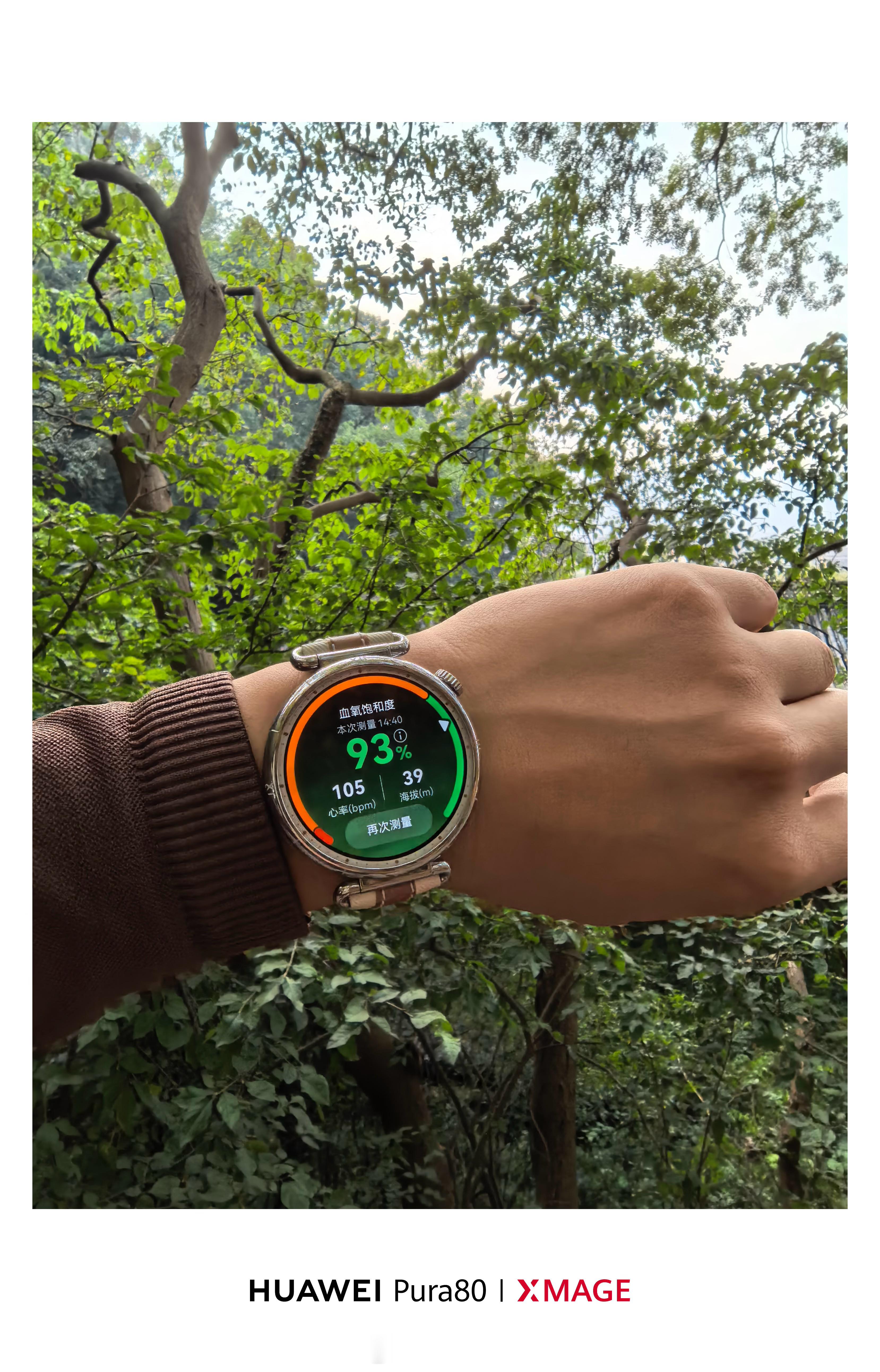 在华为手表体验区前让朋友用pura80帮我咔了几张