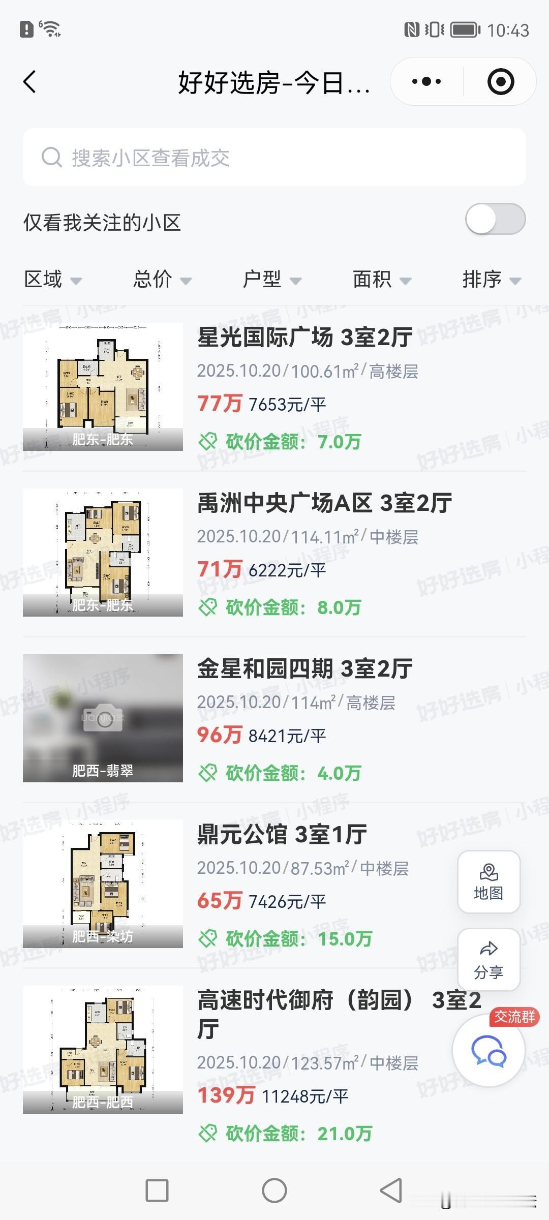 合肥最新部分二手房成交情况。二手房成交市场是真的确可以。 现在感觉很多人把多余的房子卖了,就是一种如释重负的感觉。跟前几年完全不一样了,之前是炫耀有多少房子,现在但凡说有几套房子的,很多人就在给他默算,这些年到底亏了多少钱。