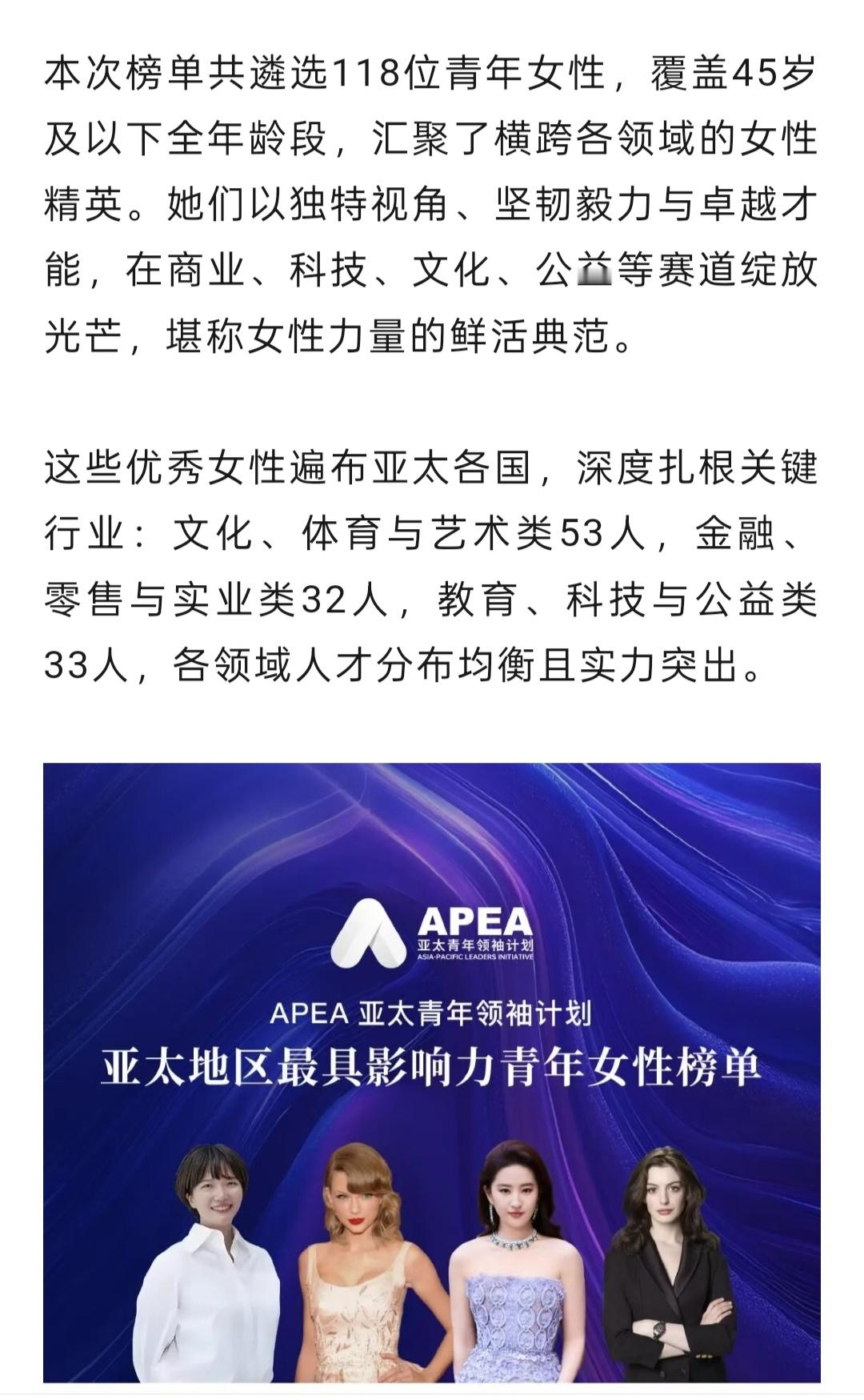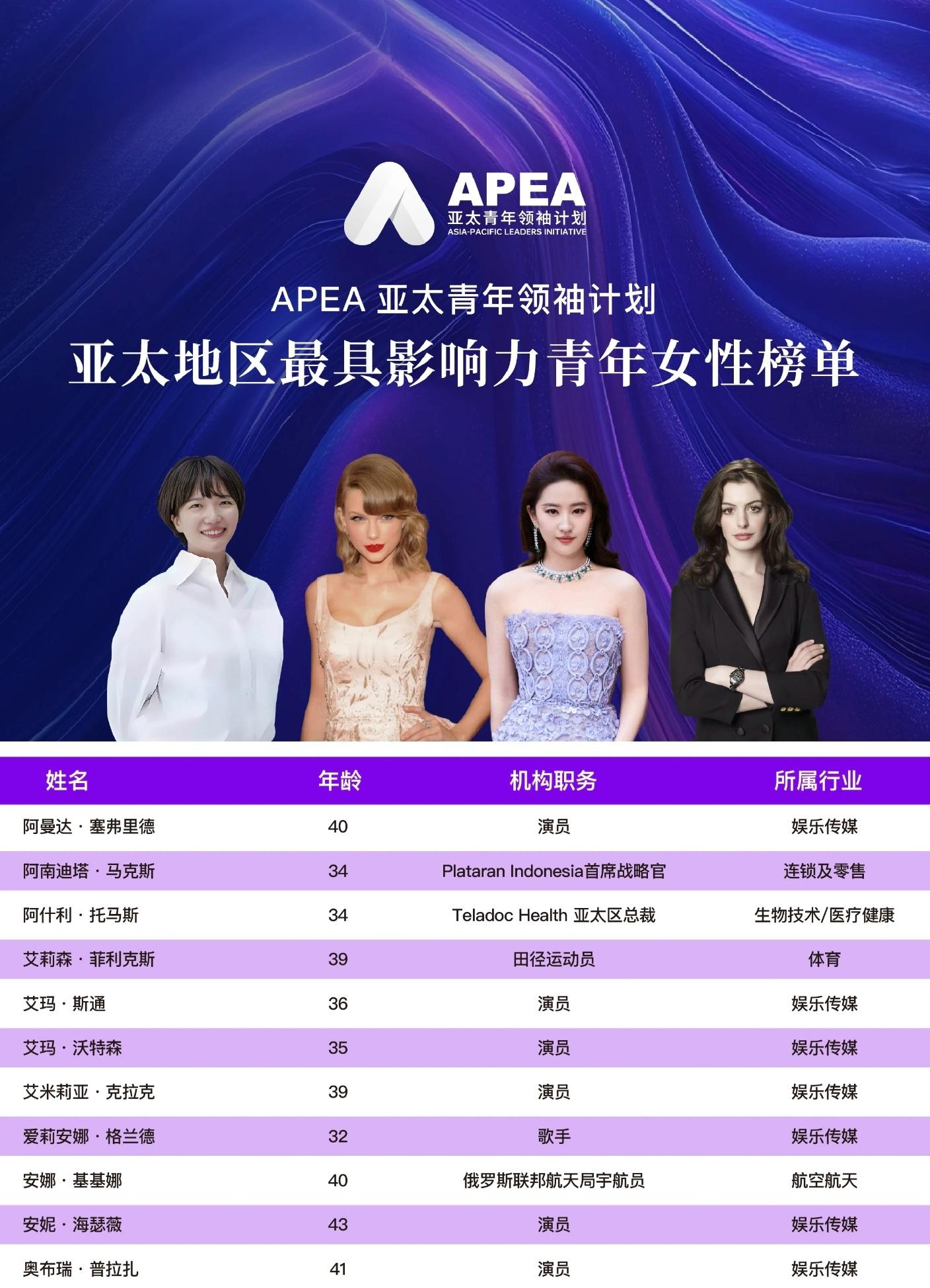 11月1日,在2025年APEC峰会期间举行的亚太青年企业家论坛(APEA)上发布了「2025亚太地区最具影响力青年女性榜单」,以表彰在亚太地区经济与社会进步中展现卓越领导力和创新精神的青年精英!
