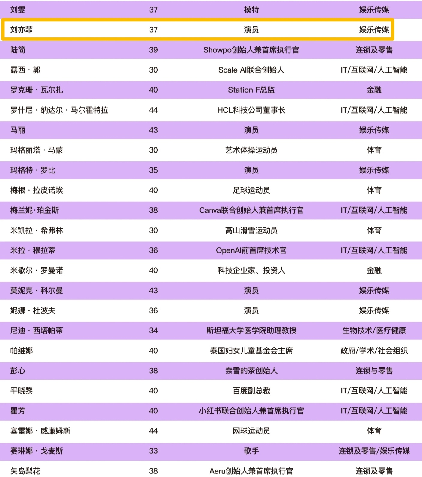 刘亦菲上榜并位列官方发布的榜单版头C位[赞][赞]