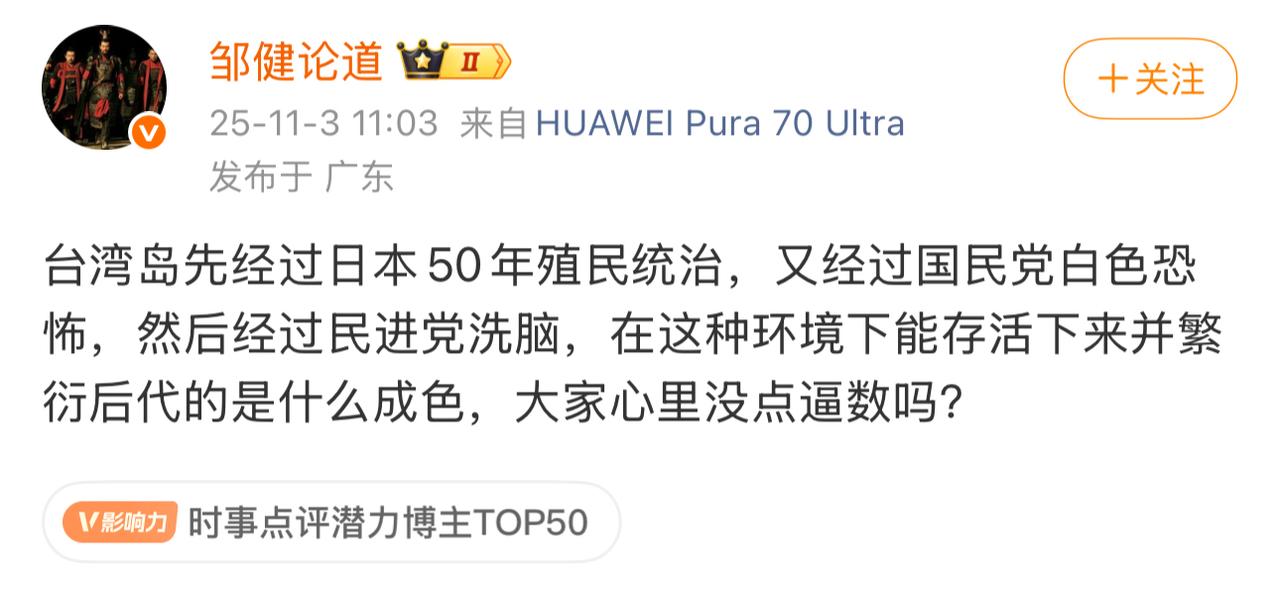 郑丽文这份工作挺好,一天不用干别的,就表态了,问题是她表态有什么用,她怕不是忘了自己在野党吧,还有她表的态跟没表有什么区别?除了拖延时间还会点别的不?你没演腻,观众看腻了,这么多年,一点花样没变!难怪有位博主说:台湾岛先经过日本50年殖民统治,又经过国民党白色恐怖,然后经过民进党洗脑,在这种环境下能存活下来并繁衍后代的是什么成色,大家心里没点逼数吗?