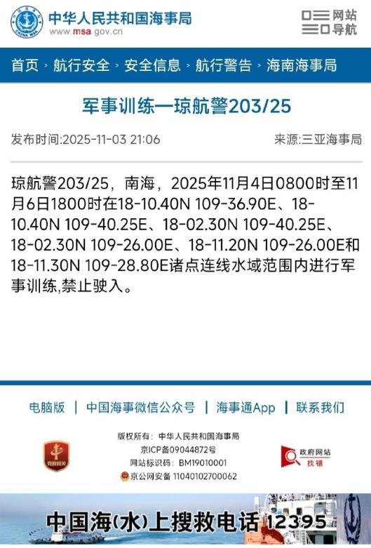 三亚海事局发布航行警告,福建舰的“大日子”终于确定了?   11月3日三亚
